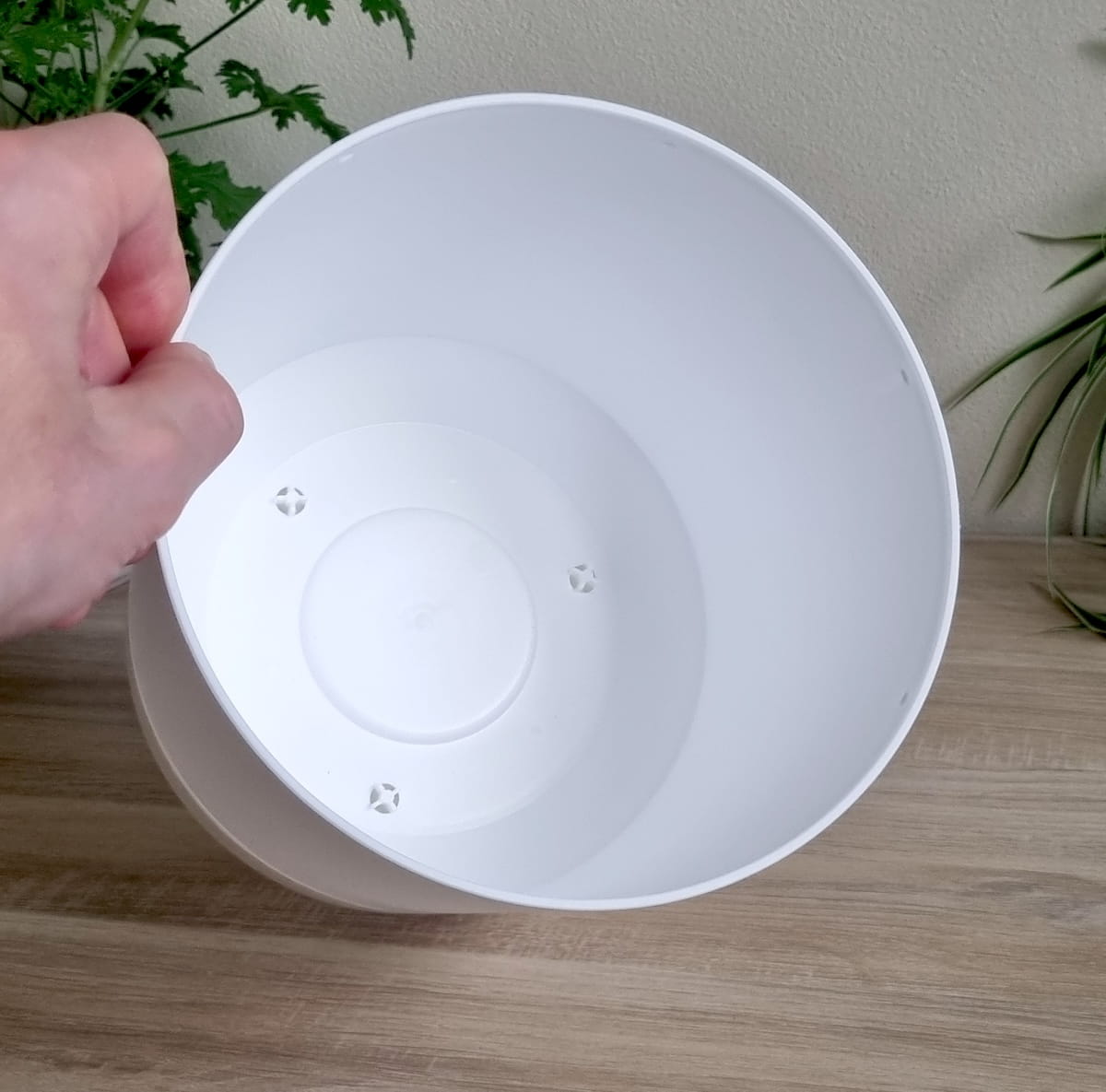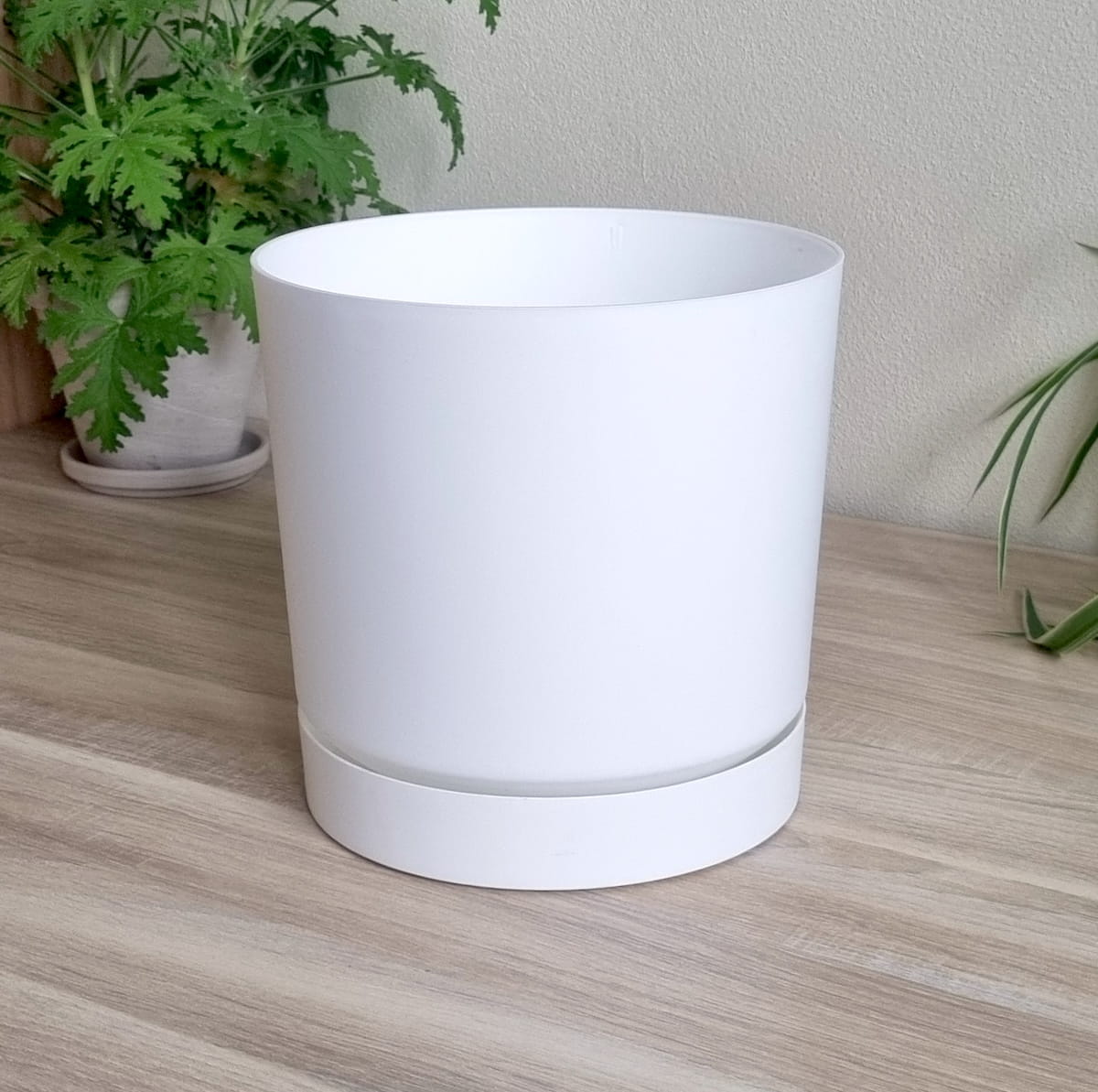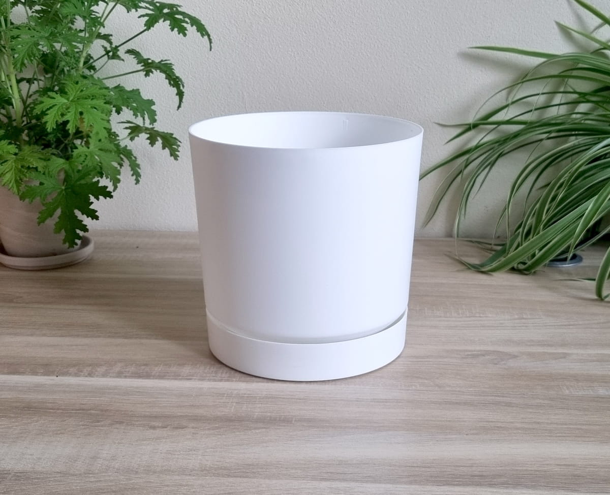 - prosta i ponadczasowa doniczka wykonana z wysokiej jakości tworzywa