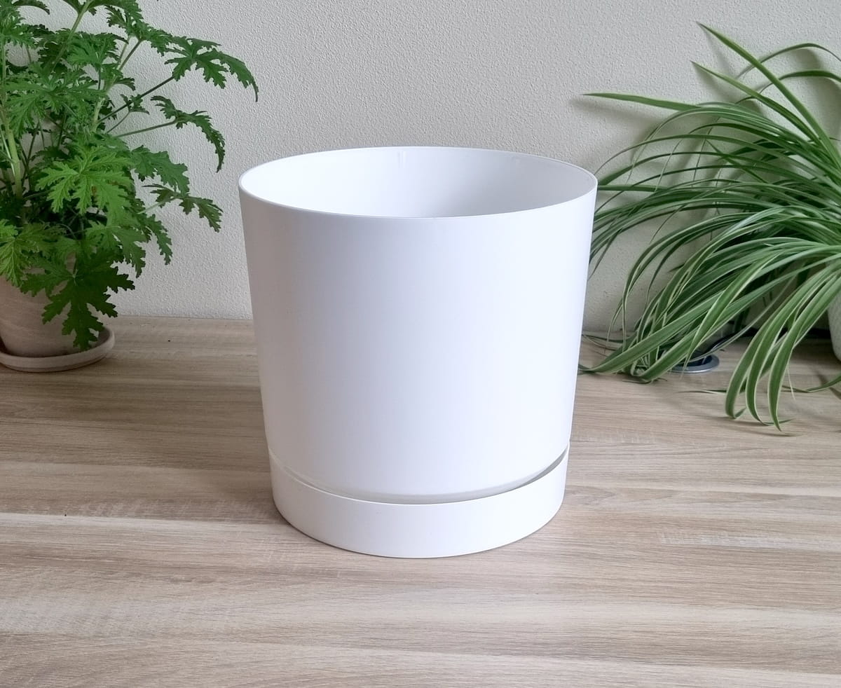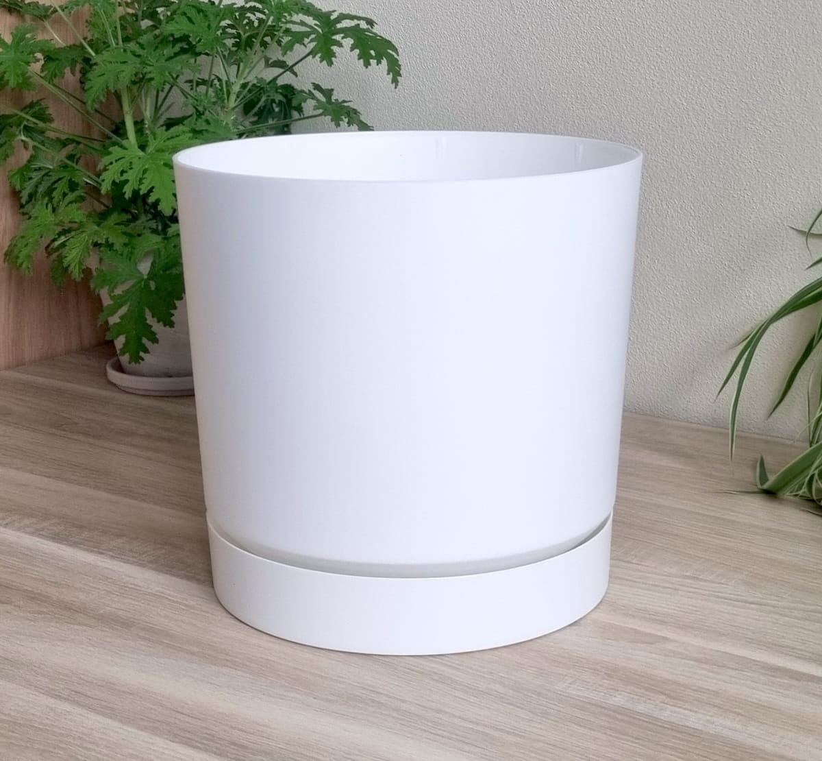 Doniczka Tubo P 24cm 8L biała z podstawką - donica na rośliny domowe
