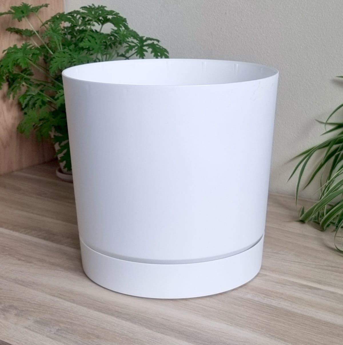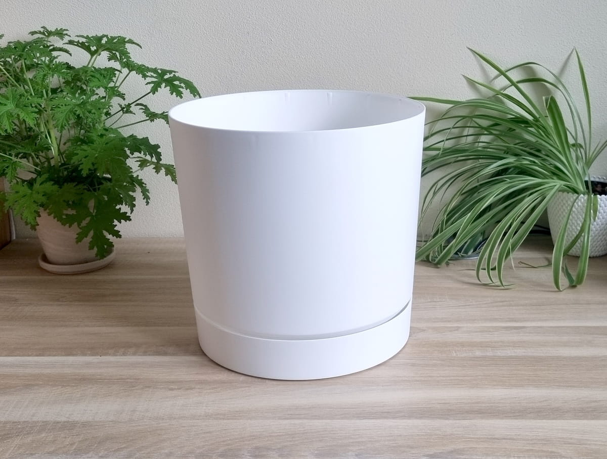 - prosta i ponadczasowa doniczka wykonana z wysokiej jakości tworzywa