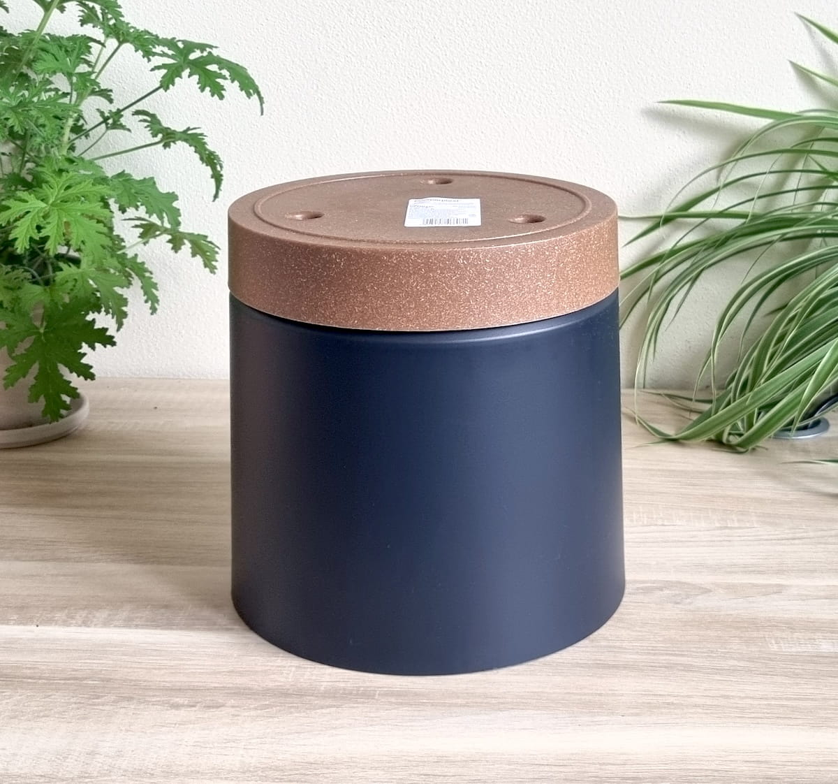 Doniczka Tubo PM 24cm 8L antracytowa z podstawką Naturo Eco Wood