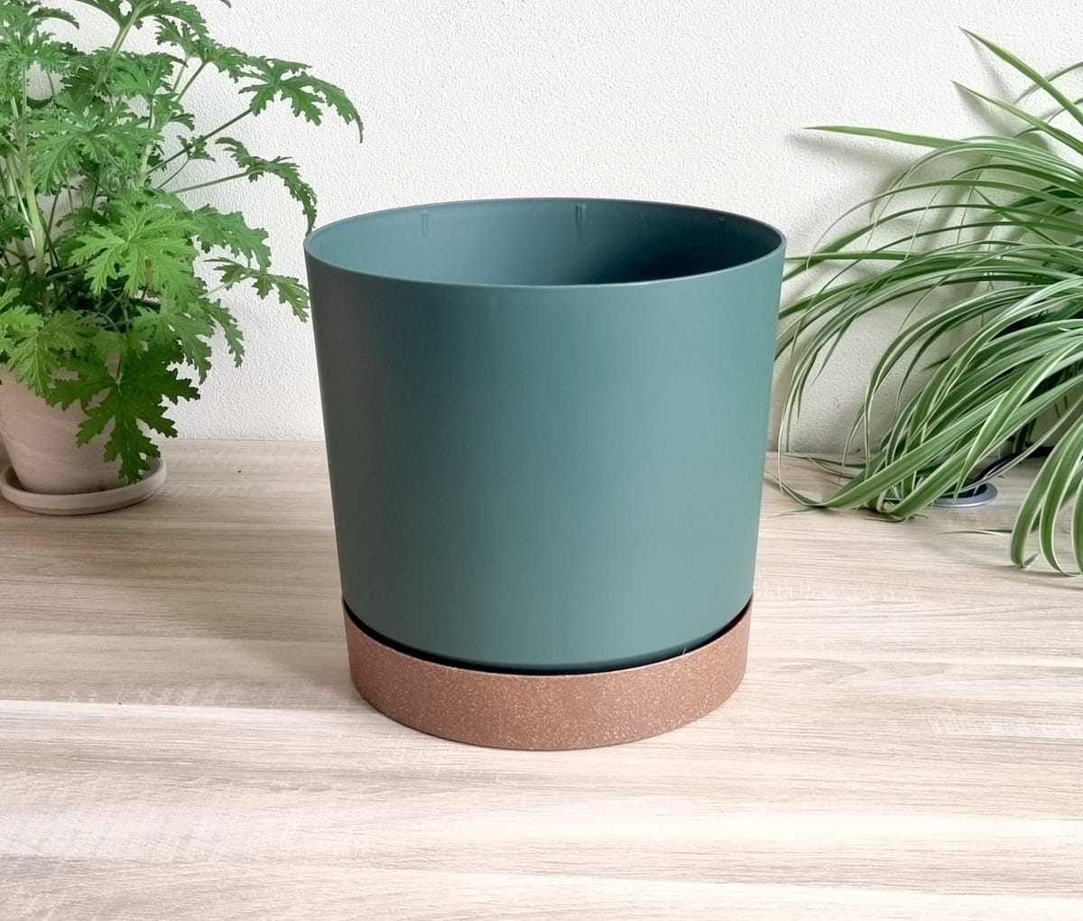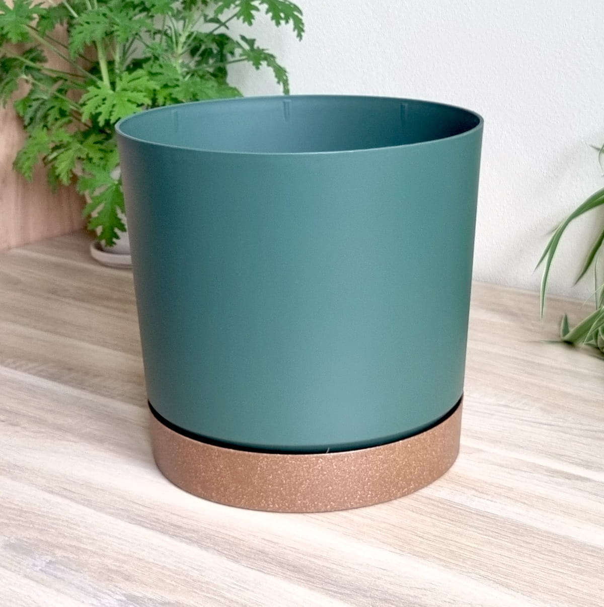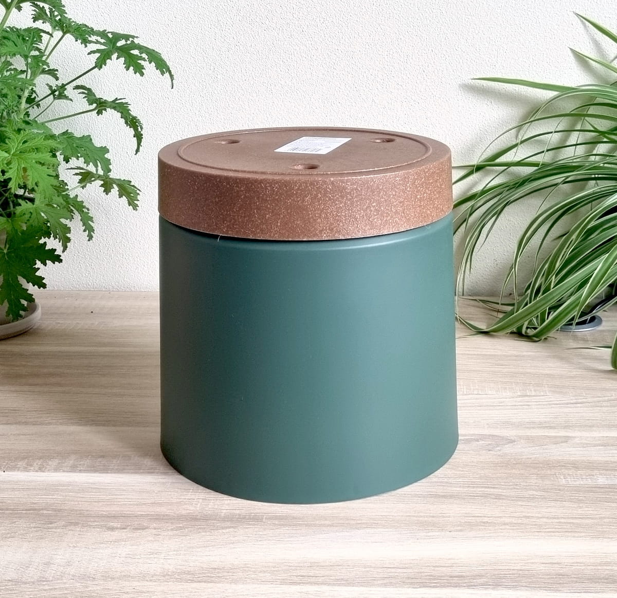 Doniczka Tubo PM 24cm 8L zielona pinia z podstawką Naturo Eco Wood