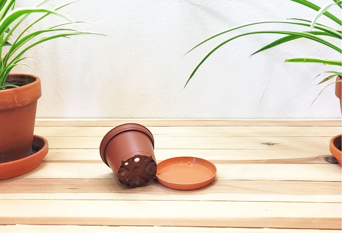 Zestaw do uprawy roślin w domu - doniczki produkcyjne z podstawkami