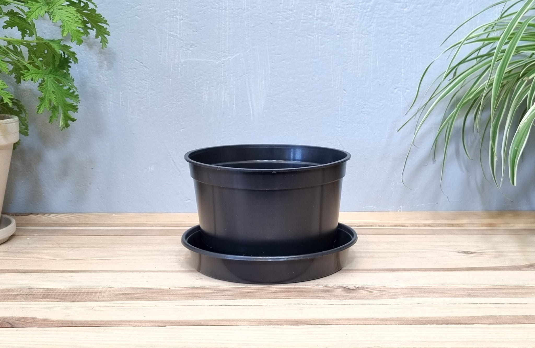 Doniczka produkcyjna okrągła niska z podstawką