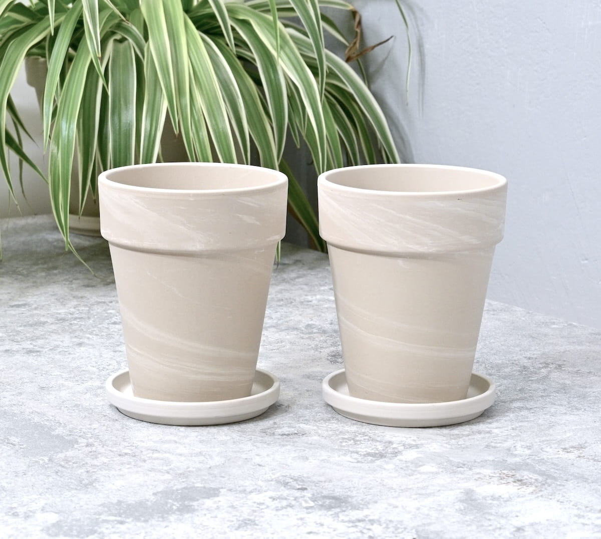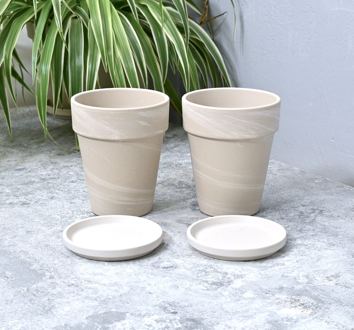 Doniczki gliniane Granit XL 12cm z podstawkami x 2szt. - jasna terakota