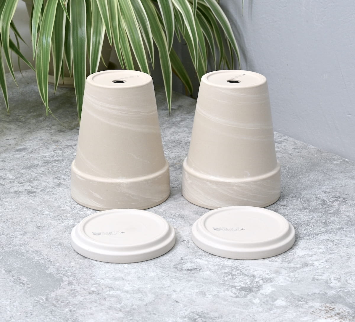 Doniczki gliniane Granit XL z podstawkami - zestaw 2 sztuk: