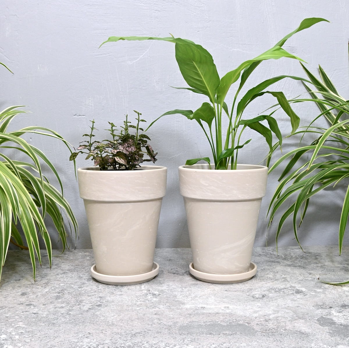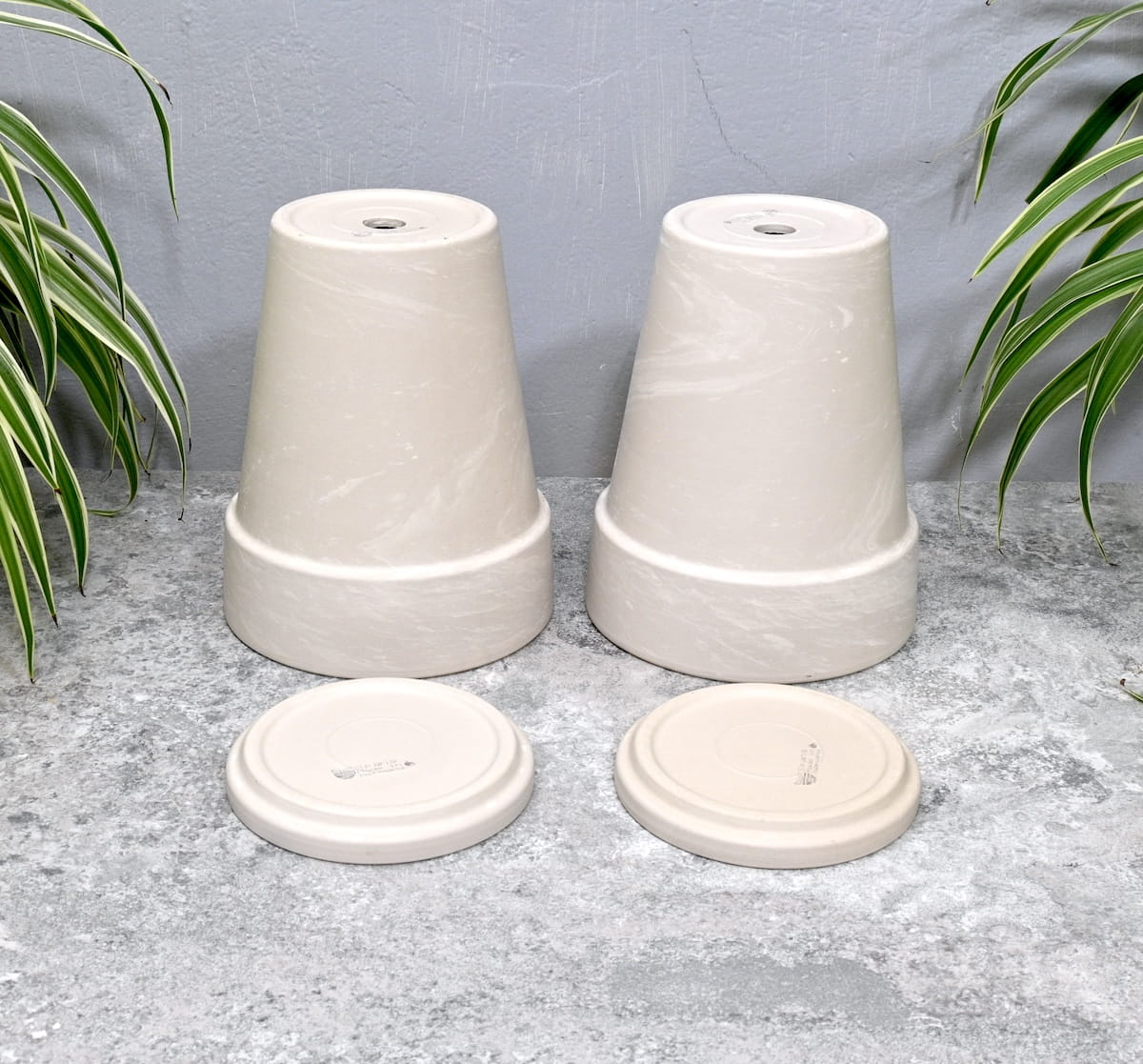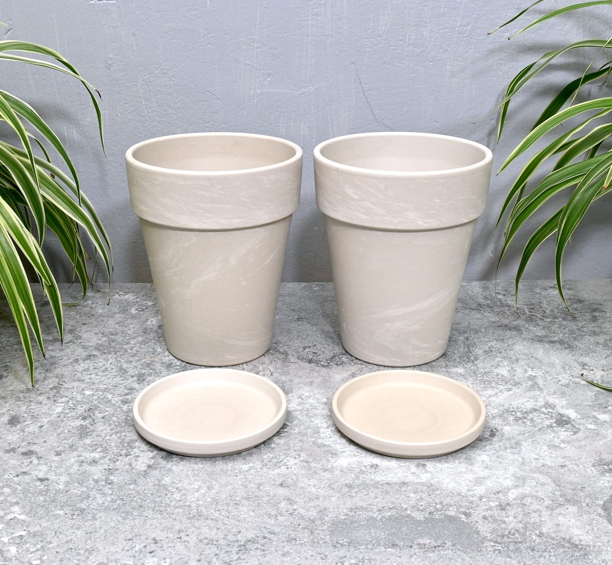Doniczki gliniane Granit XL z podstawkami - zestaw 2 sztuk: