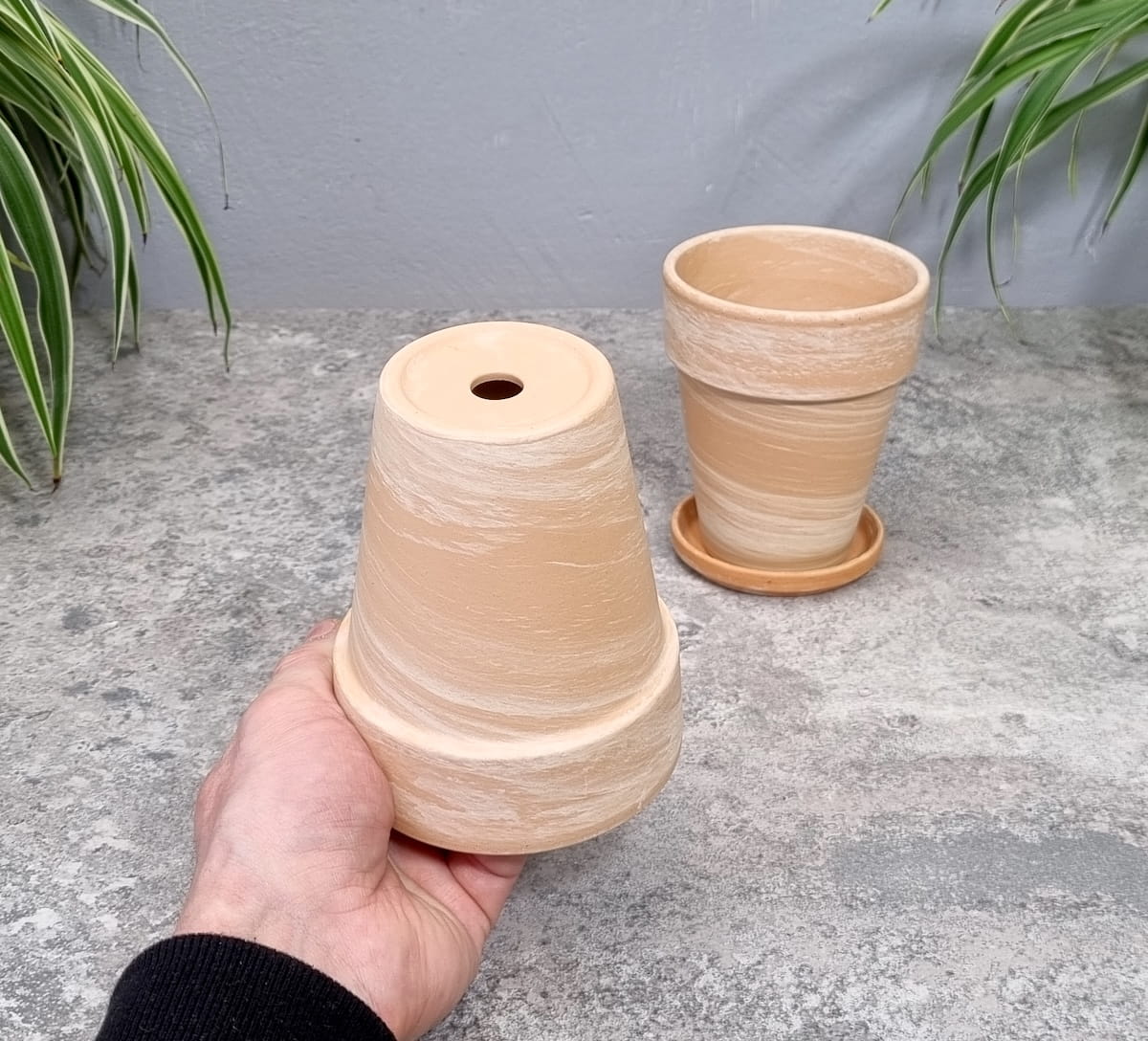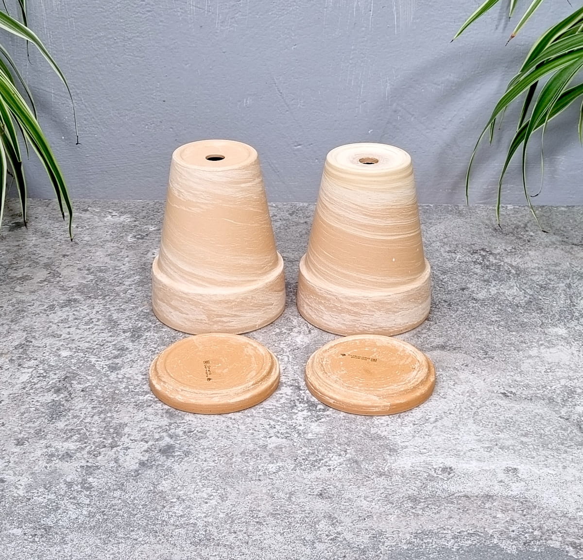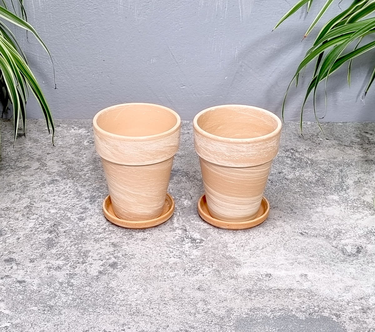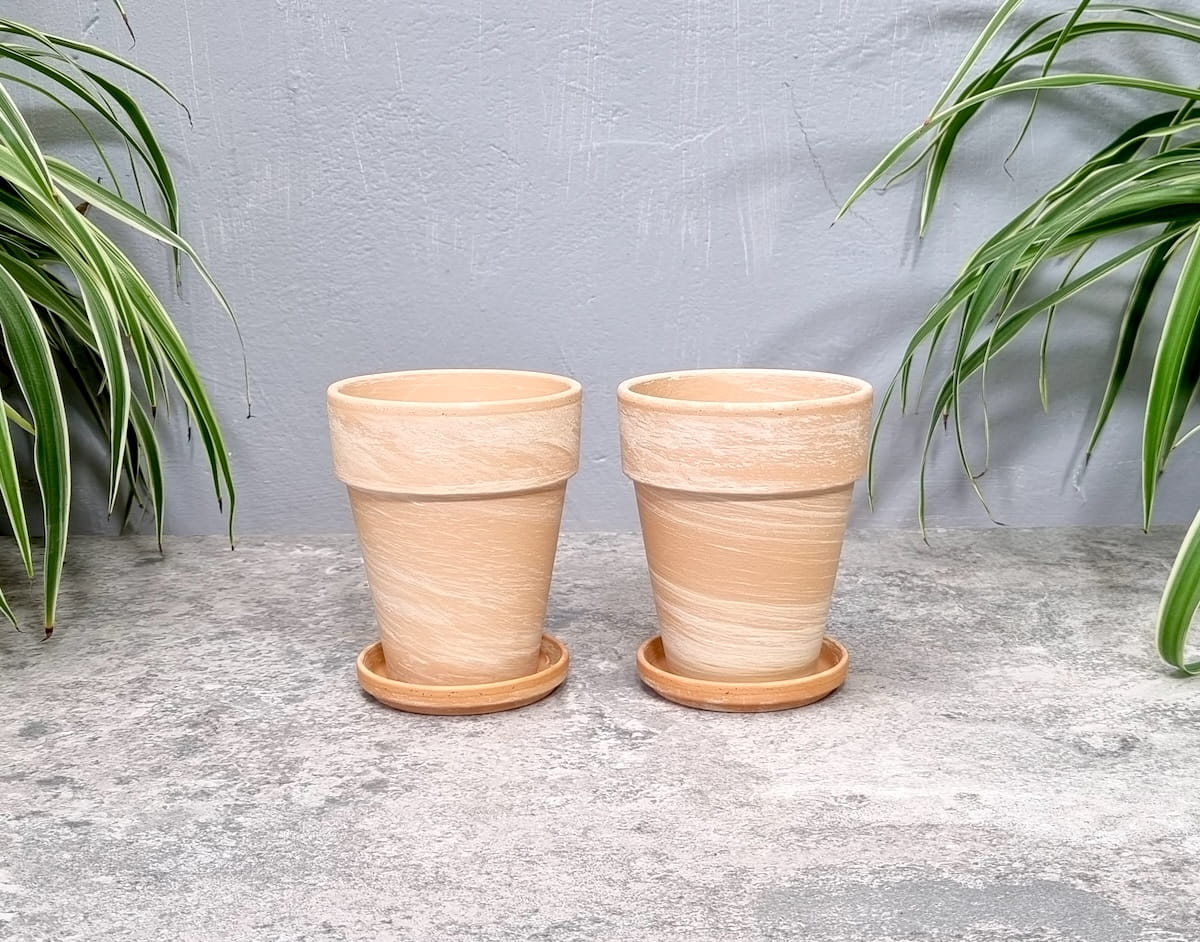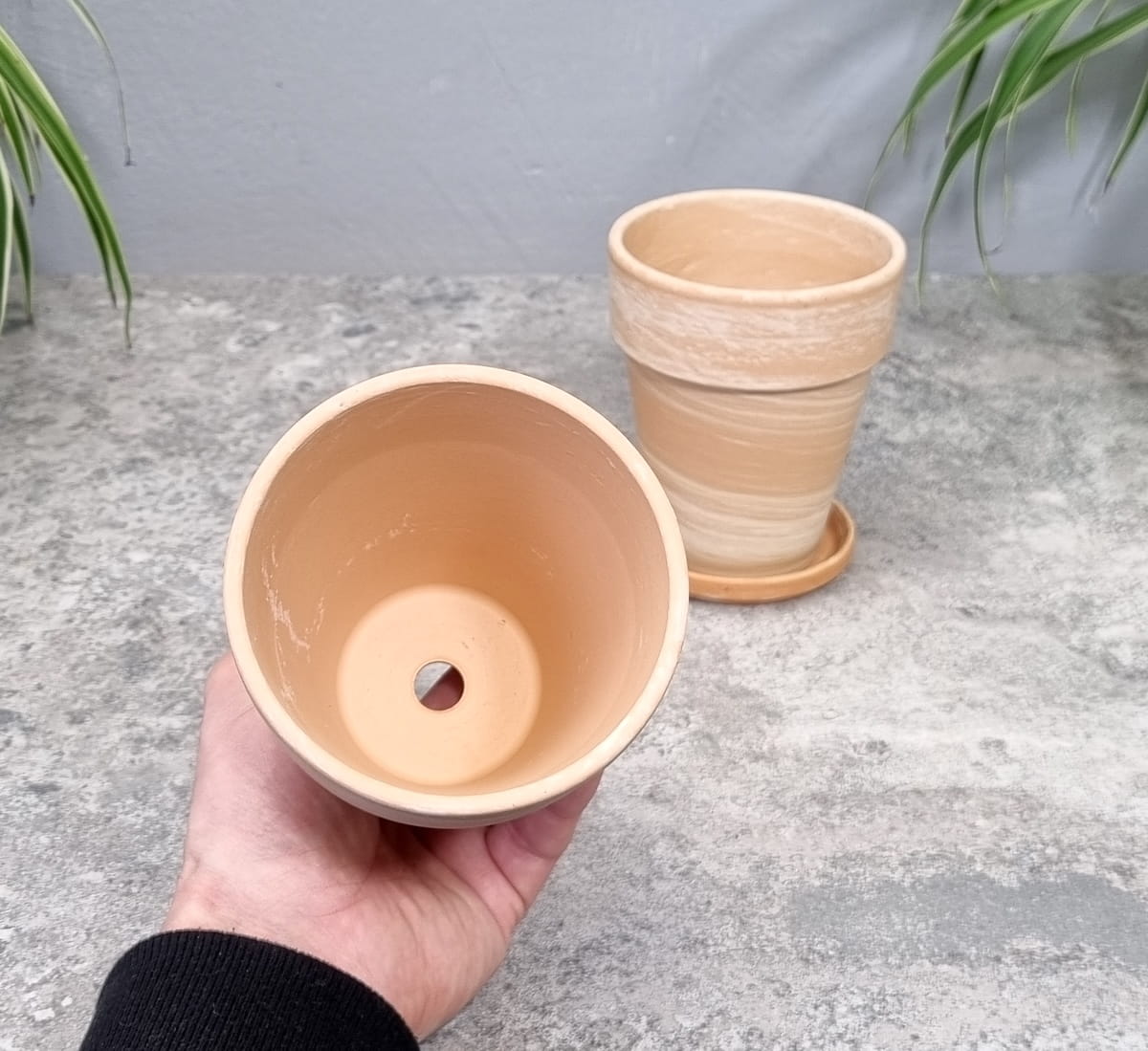 Doniczki gliniane HM Piasek XL 10cm z podstawkami x 2szt. - terakota melanż
