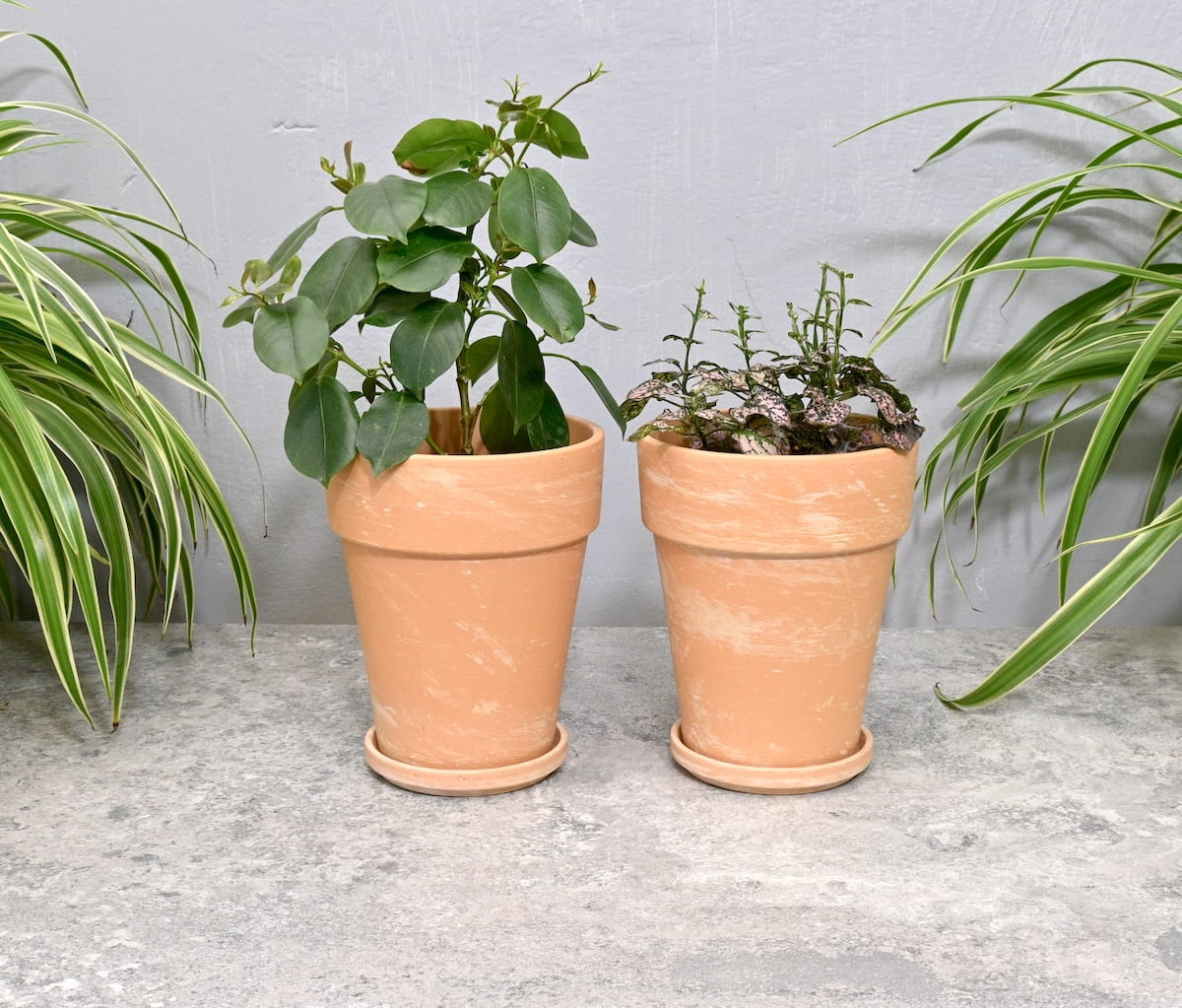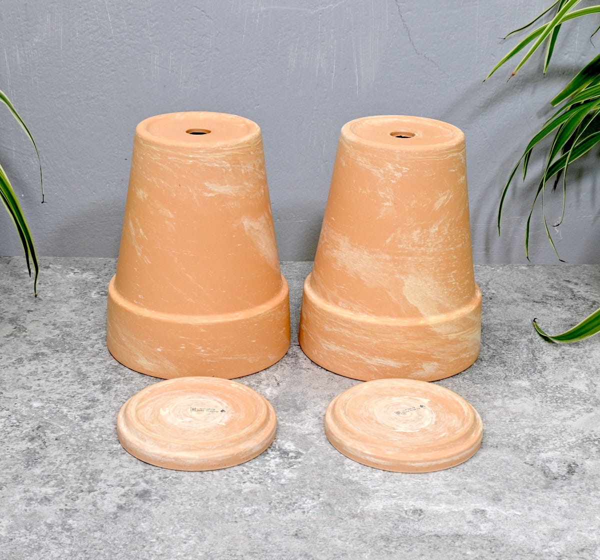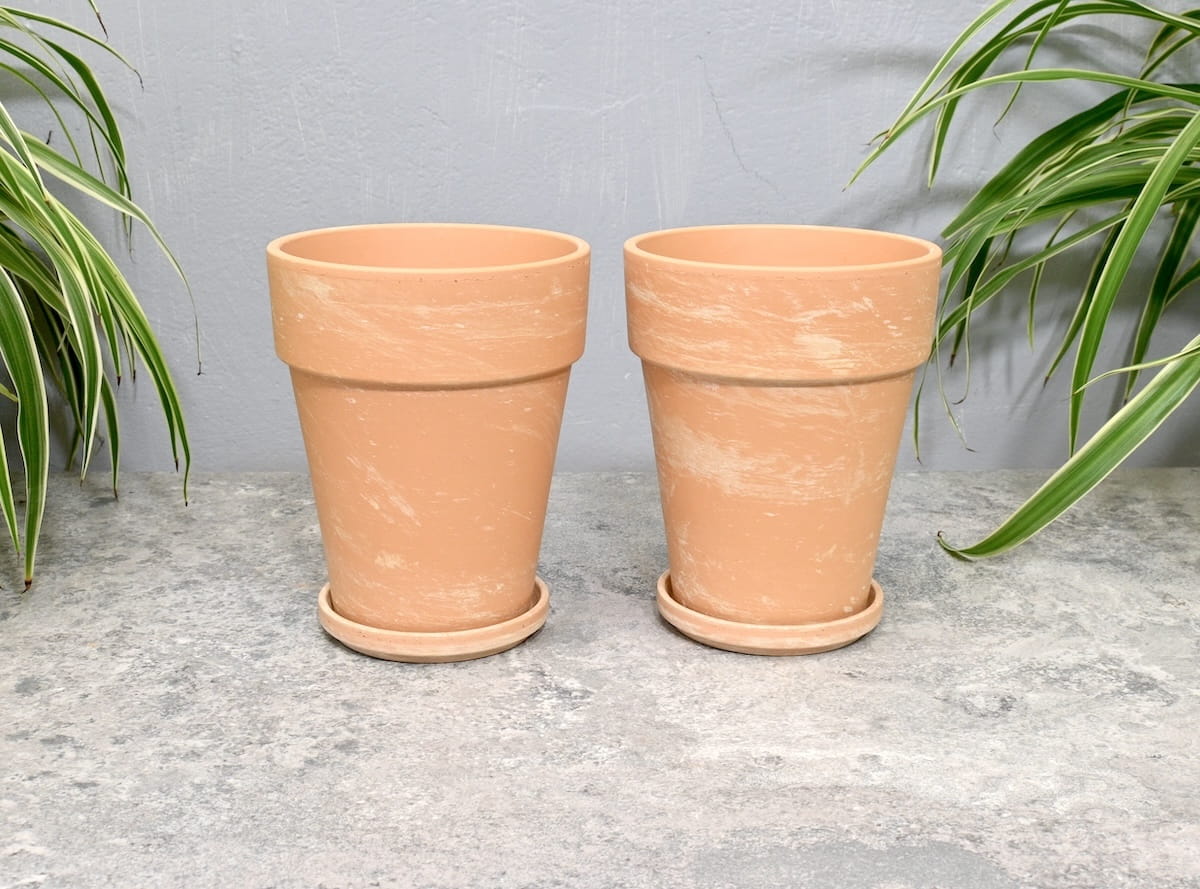 Doniczki gliniane HM Piasek XL 14cm z podstawkami x 2szt. - terakota melanż