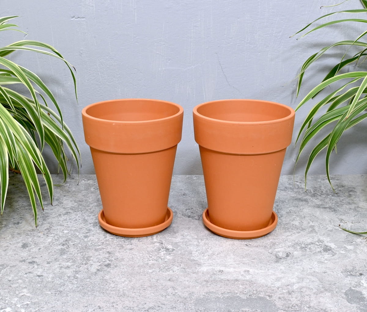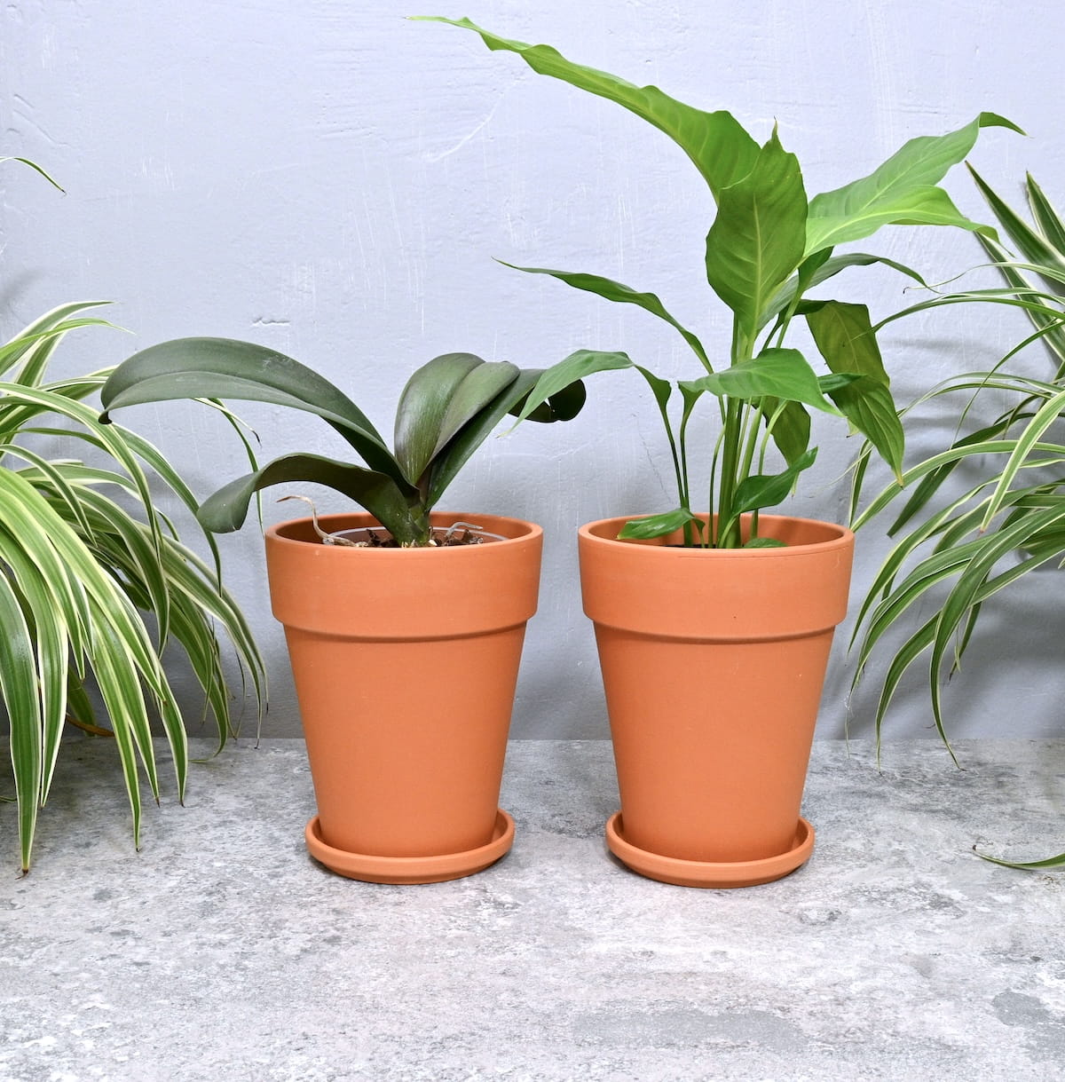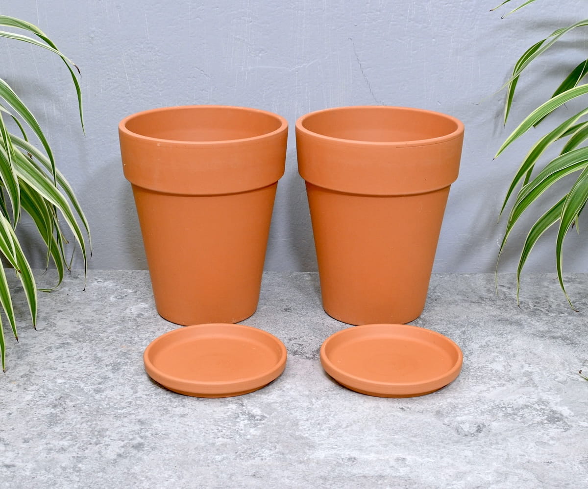 Doniczki gliniane Terakota Natur XL z podstawkami - zestaw 2 sztuk: