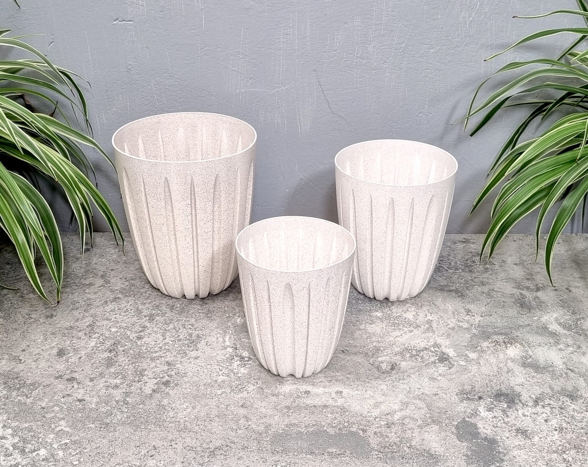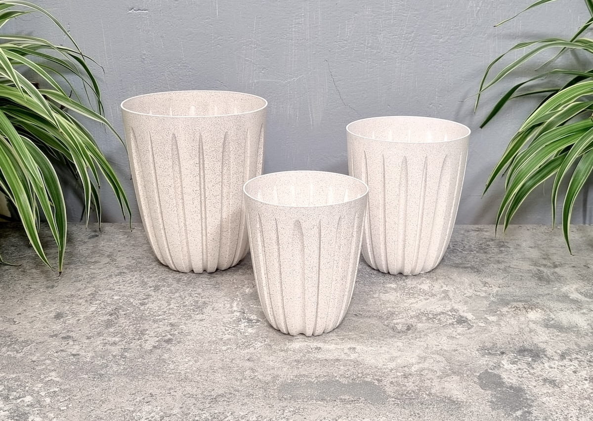 Doniczki Wario Eco Wood beżowe - zestaw 3 donic - 14cm 16,5cm 19cm