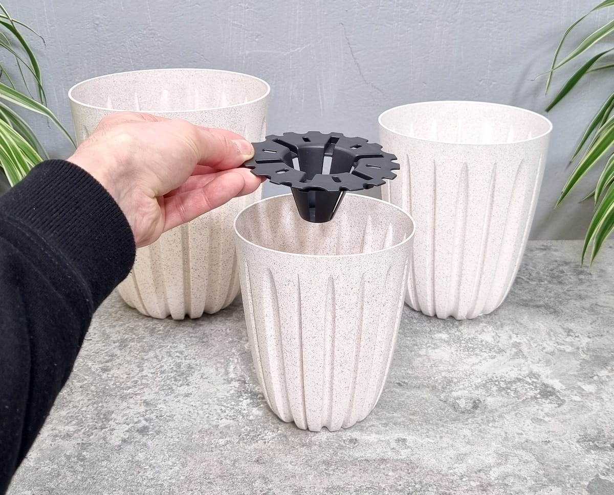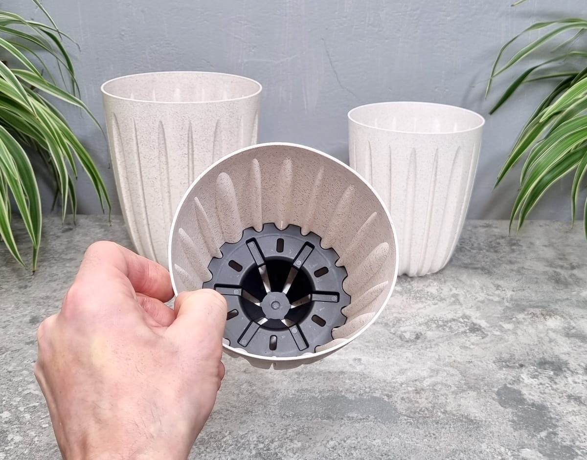 - wyposażone w wkład drenażowy, dzięki któremu nadmiar wody po podlaniu gromadzi się pod strefą korzeniową