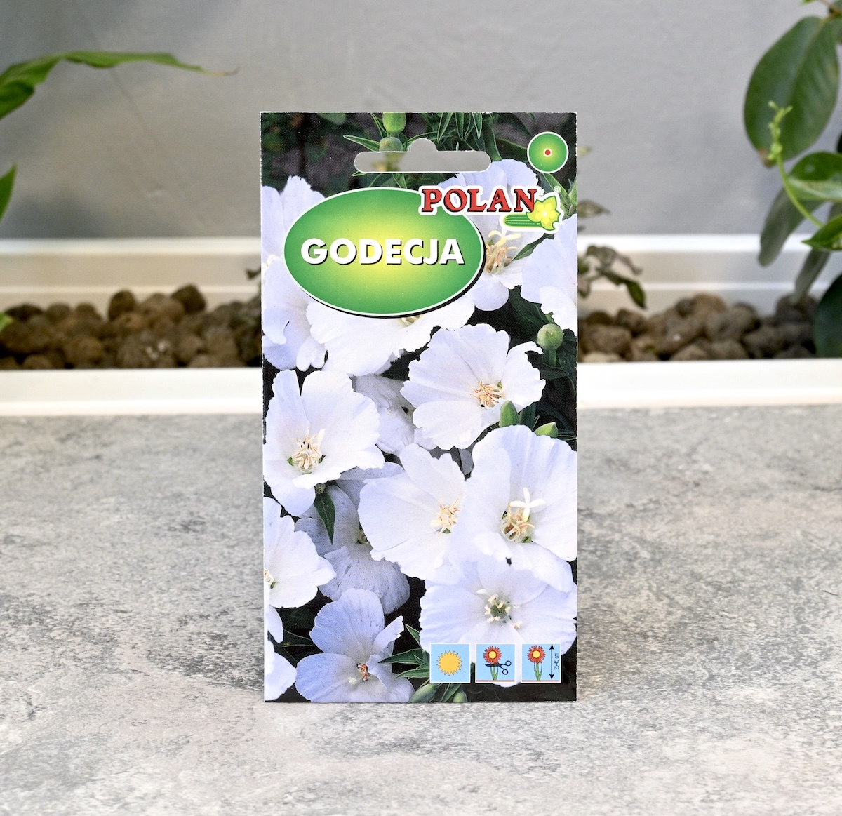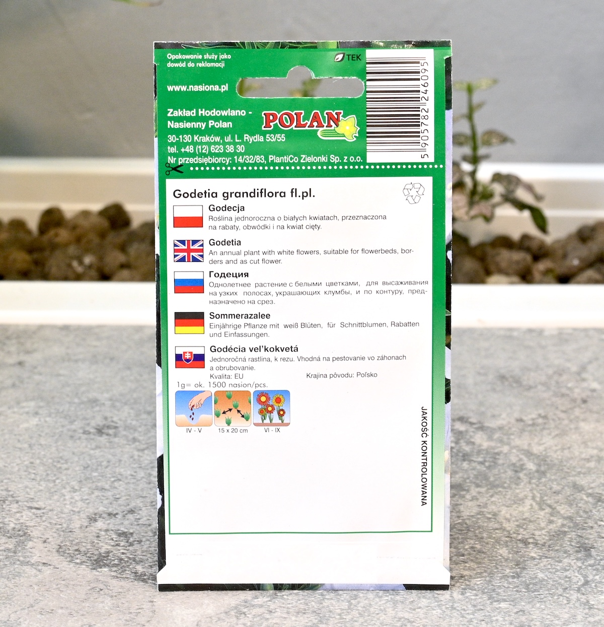 Godecja wielkokwiatowa biała, nasiona firmy Polan, opakowanie 1 gram.