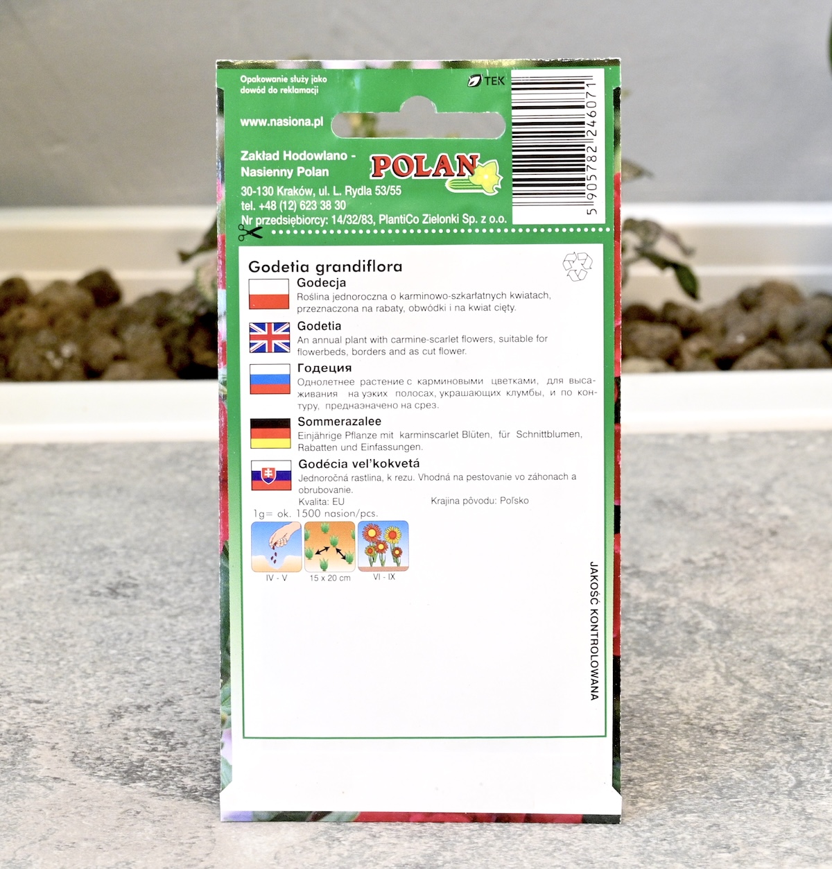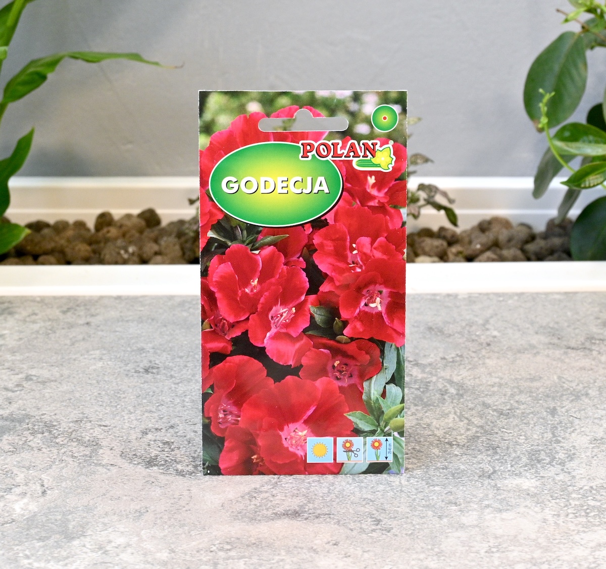 Godecja wielkokwiatowa szkarłatna, nasiona firmy Polan, opakowanie 1 gram.