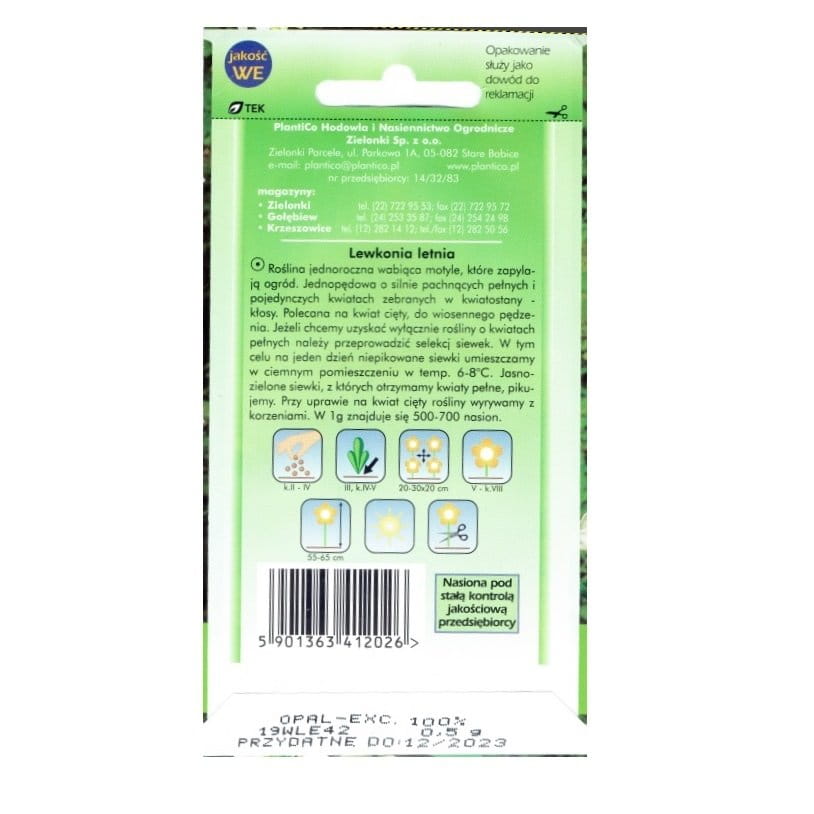 LEWKONIA letnia BIAŁA Opal nasiona kwiatów 0,5g