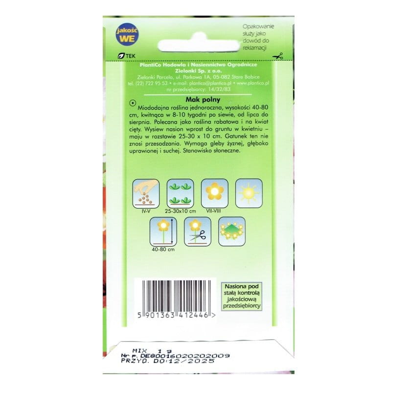 Mak polny mix kolorów - Papaver rhoeas, jednoroczny - nasiona Plantico 1g