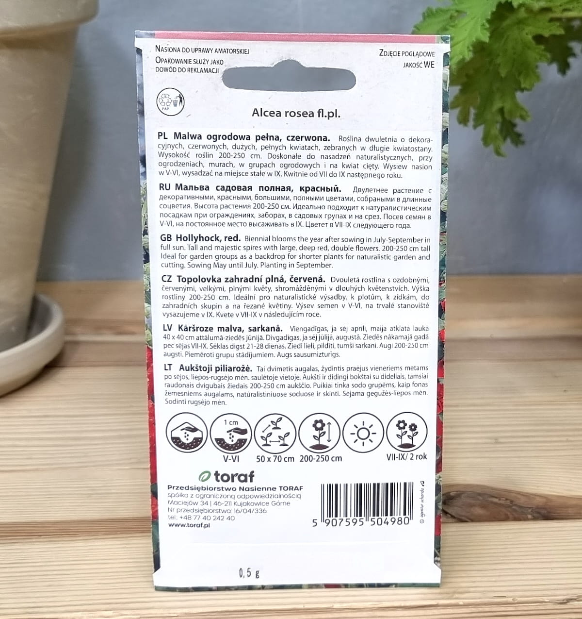 Malwa ogrodowa czerwona pełna - Alcea rosea, topolówka - nasiona Toraf 0,5g