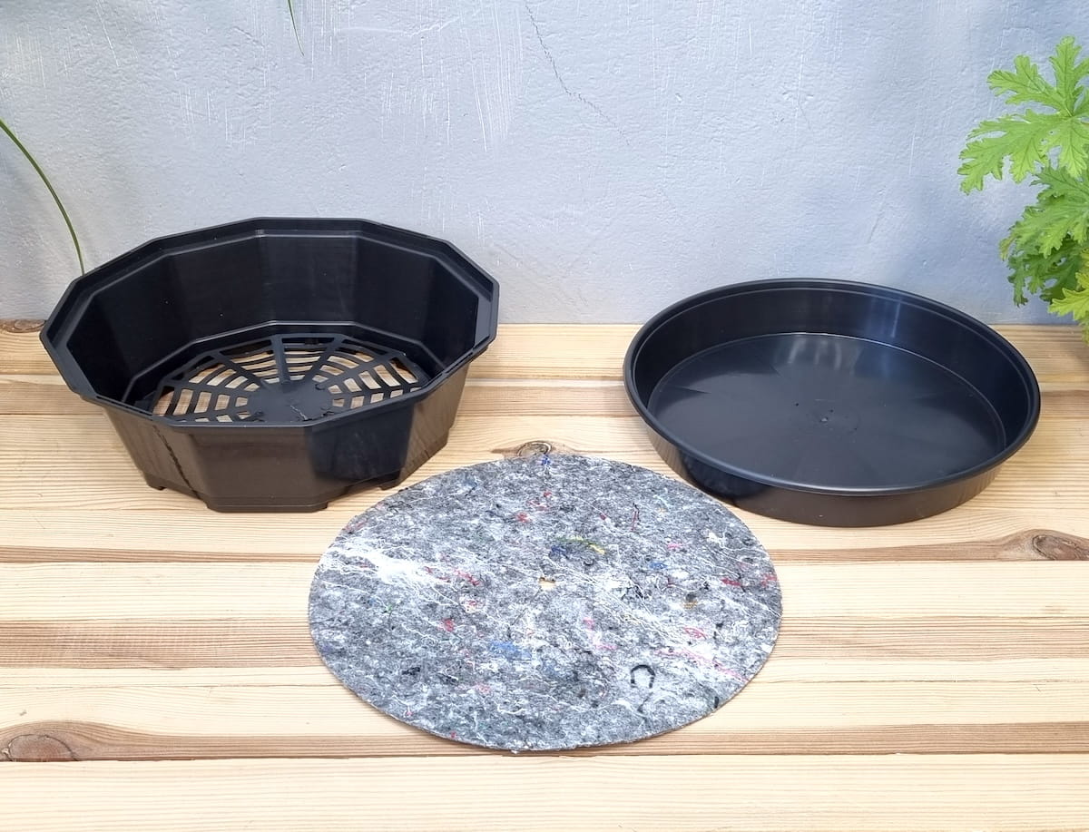 Misa chryzantemowa 27cm 3L czarna z podstawką i osłoną filcową ściółkującą