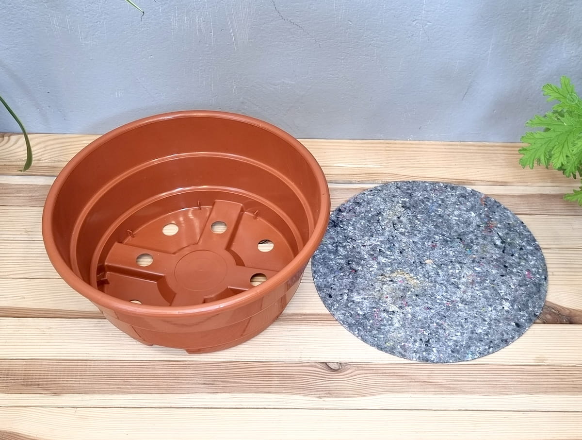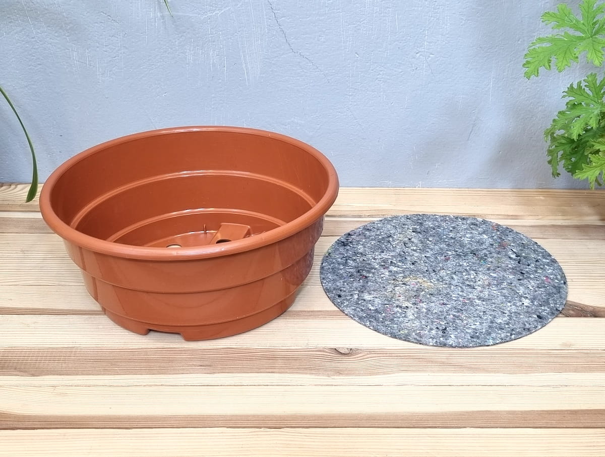 Misa plastikowa 27cm 4,7L terakota z osłoną filcową - doniczka + ściółka