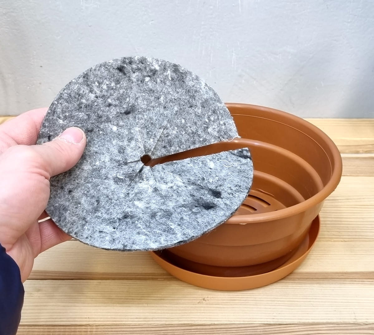 Misa plastikowa 18cm 1,8L terakota - doniczka z podstawką i osłoną filcową