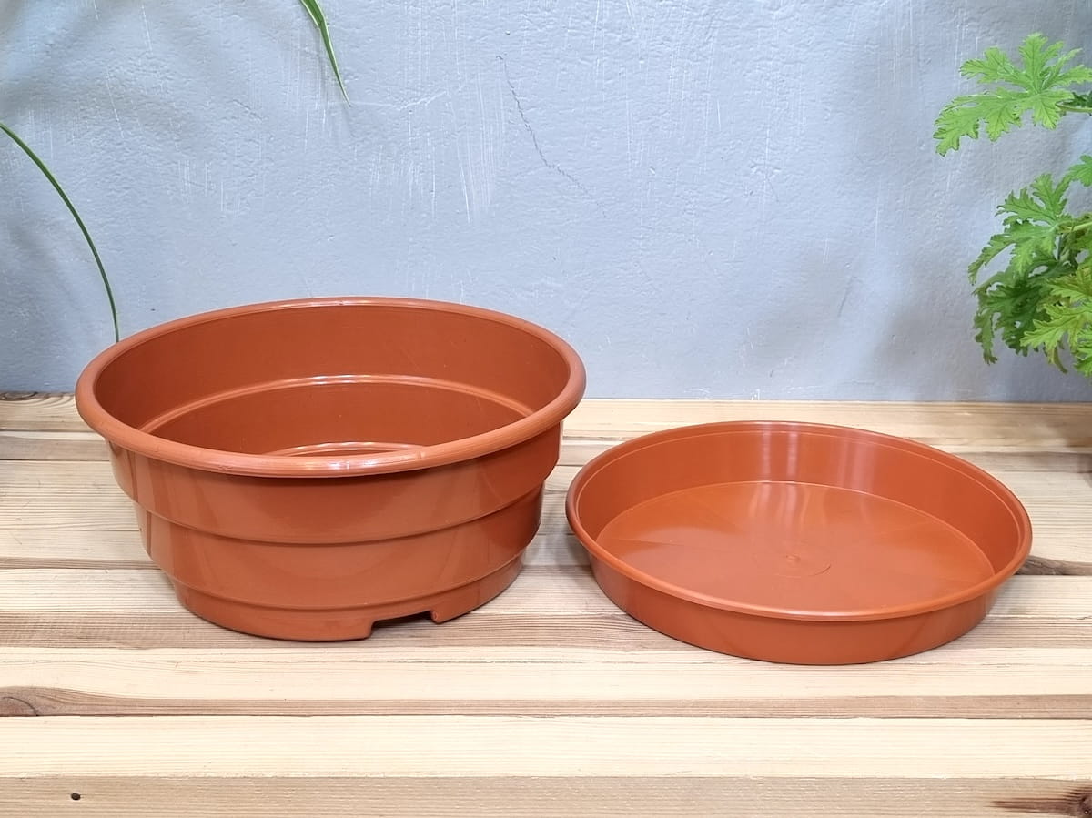 Misa 27cm 4,7L brąz terakota z podstawką - doniczka na chryzantemy, stroiki