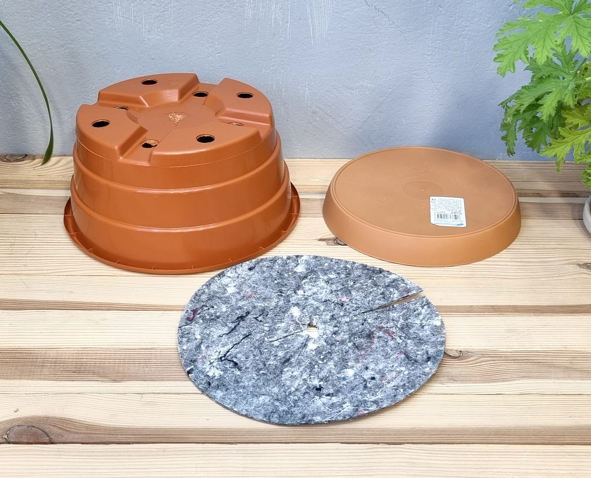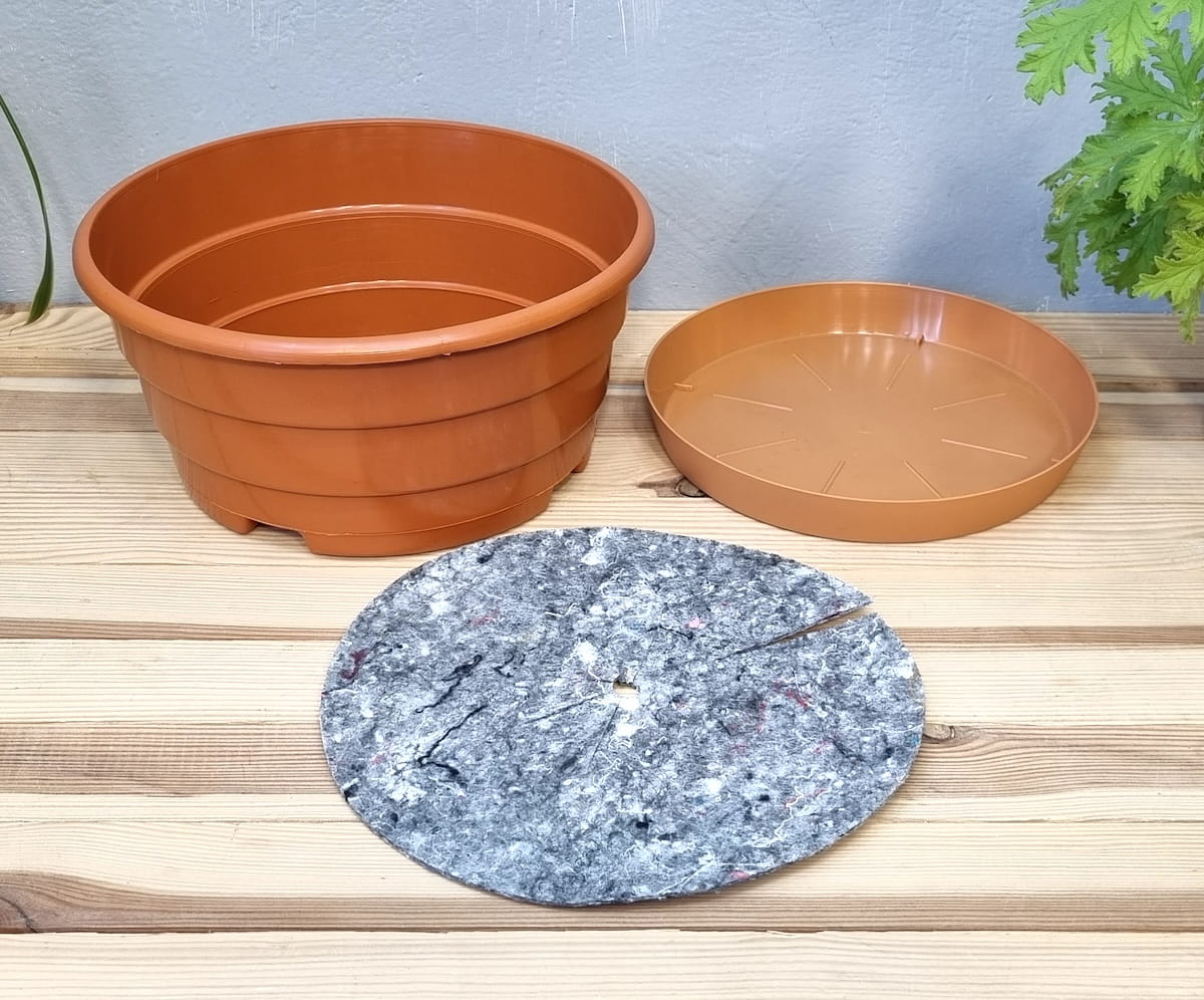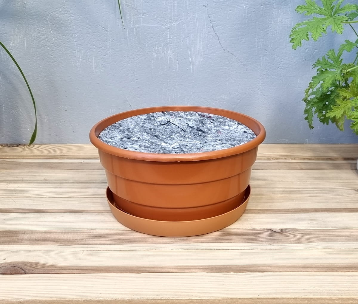 Misa 23cm 3L brąz terakota - doniczka na chryzantemy z podstawką i ściółką
