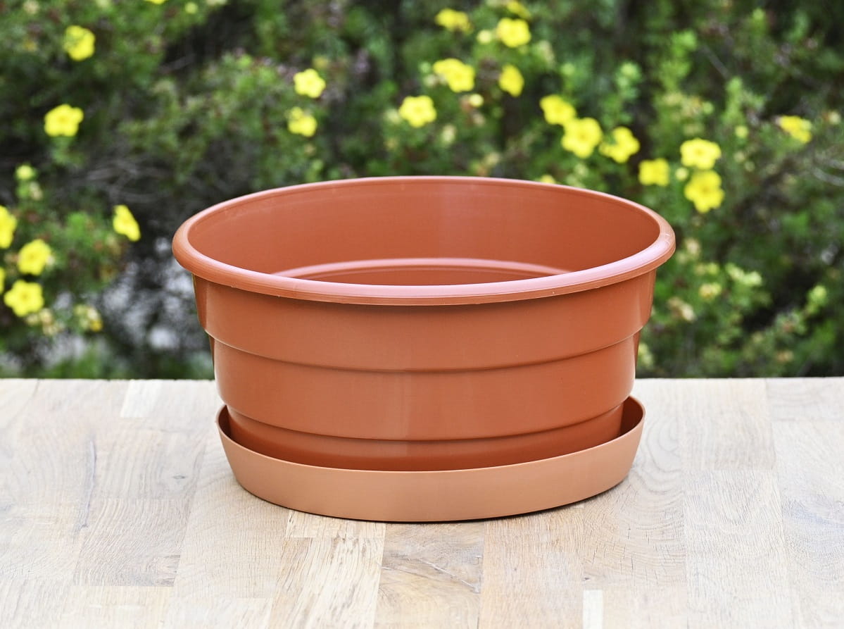 Misa 23cm 3L brąz terakota z podstawką - doniczka na chryzantemy, stroiki