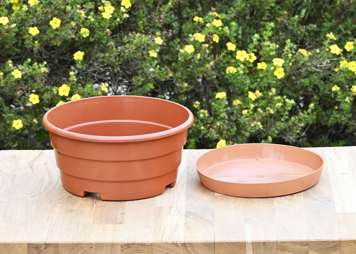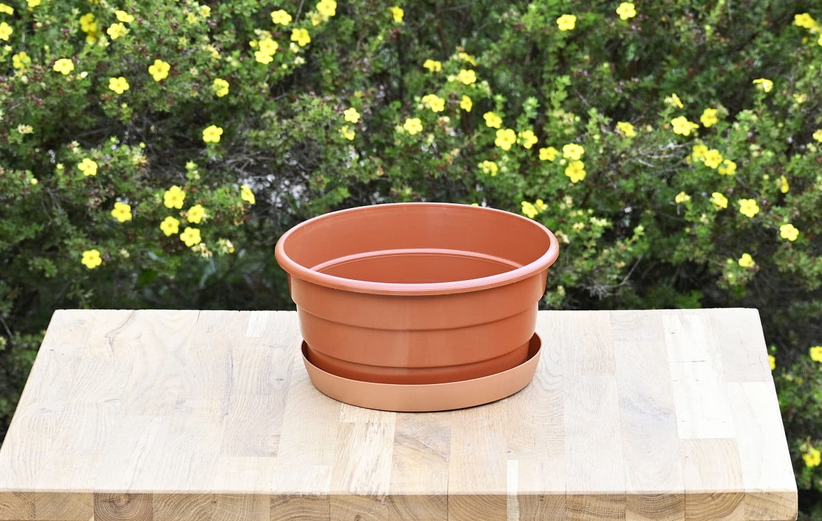 - misę można wkopać do gruntu razem z rośliną