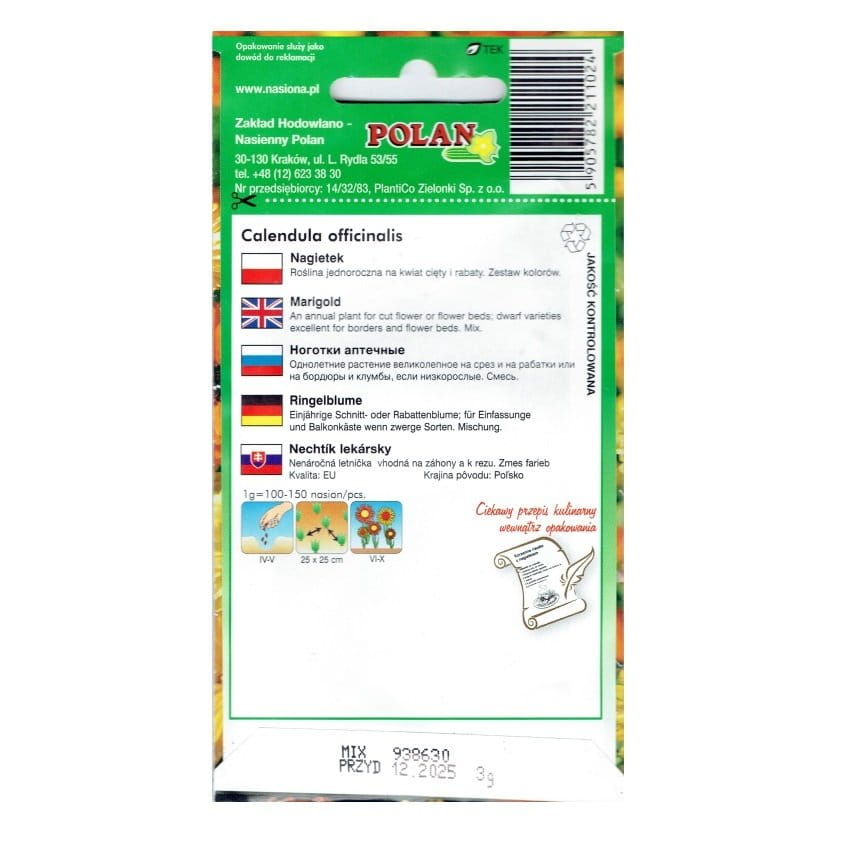 - w mieszance nasion dominują nagietki w kolorze żółtym i pomarańczowym,