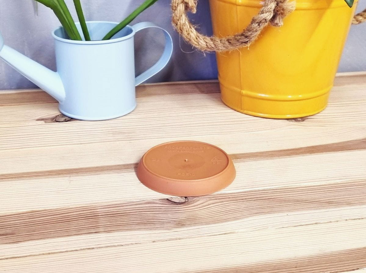 - kolor brązowy terakotowy może sprawdzić się również przy stosowaniu podstawki pod doniczki gliniane