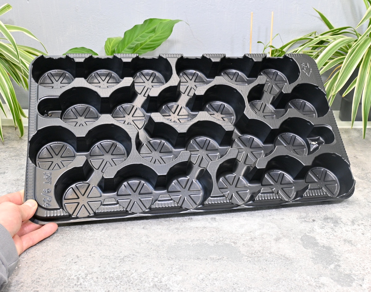 Rozsadnik składa się z 24 doniczek produkcyjnych kwadratowych 7x7 cm oraz tacki DPT1 o wymiarach 30x46 cm