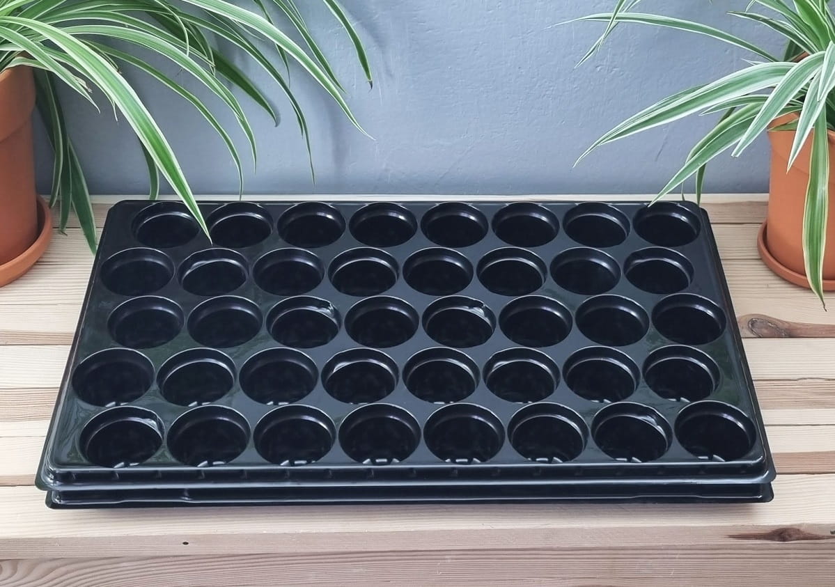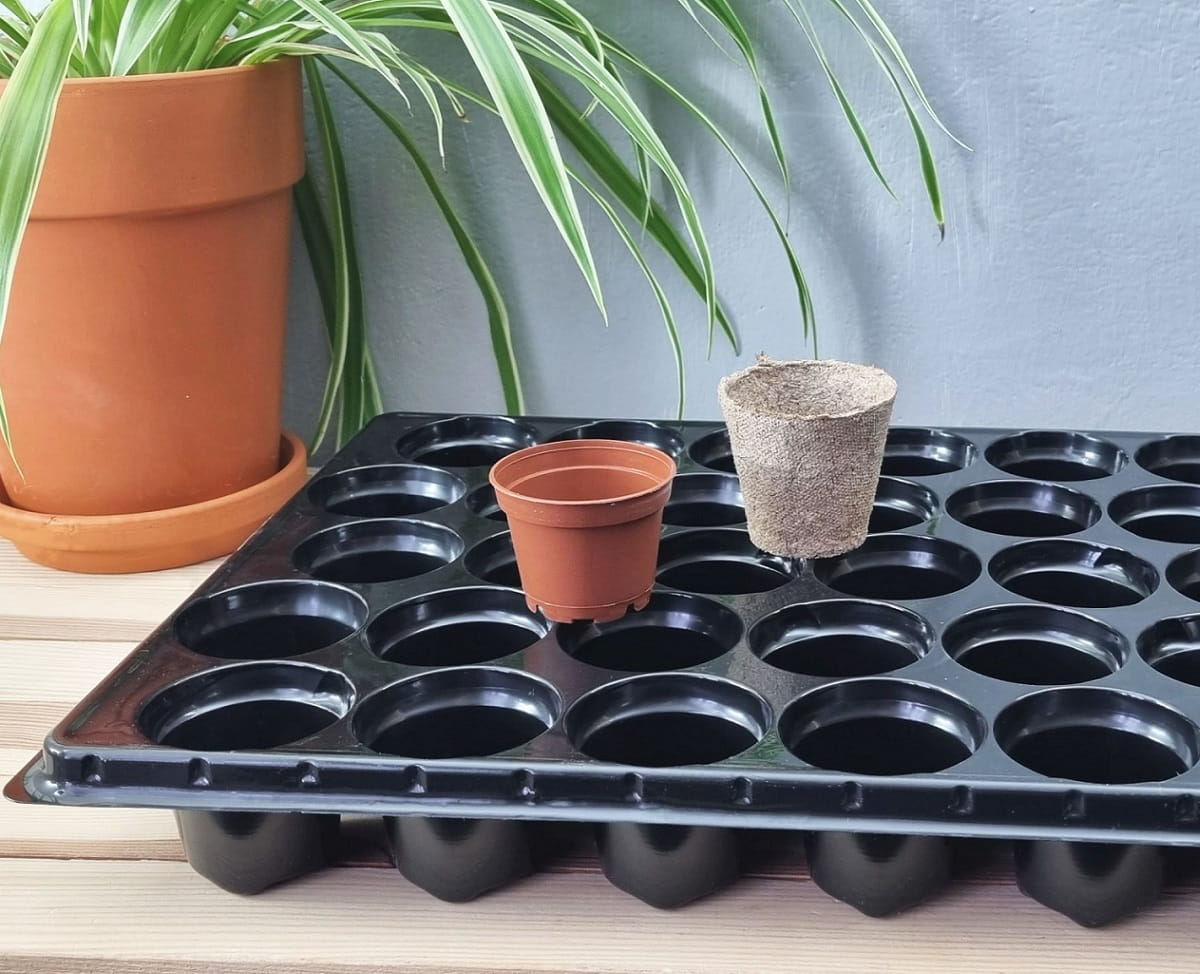 Zestaw 32 doniczek o średnicy 6 cm umieszczonych w pasującej wielodoniczce na tacy. Idealny do uprawy rozsady kwiatów, roślin szkółkarskich oraz pomidorów, ogórków, dyni i innych roślin o szybkim wzroście.