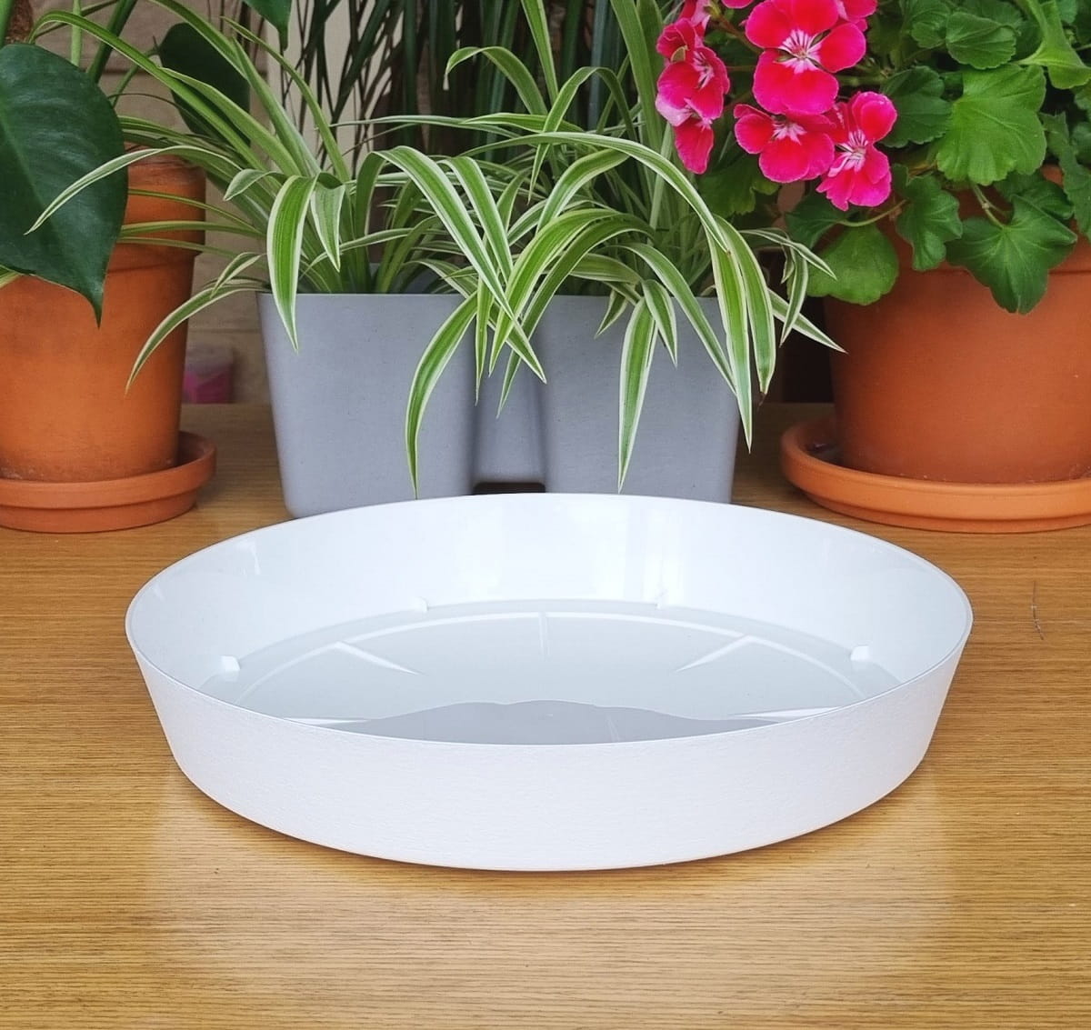 - prosta i ponadczasowa plastikowa podstawka pod doniczki