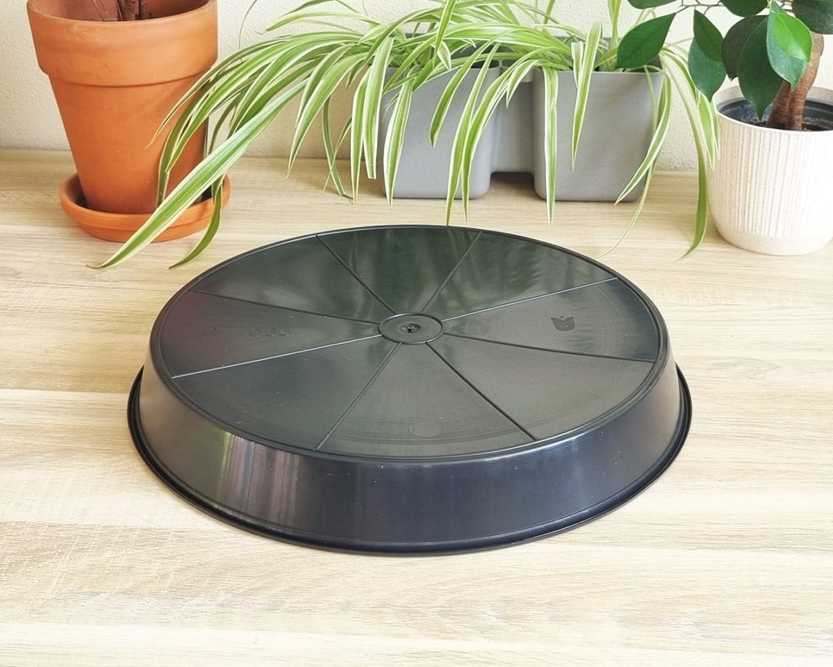 - klasyczna prosta plastikowa podstawka pod doniczki