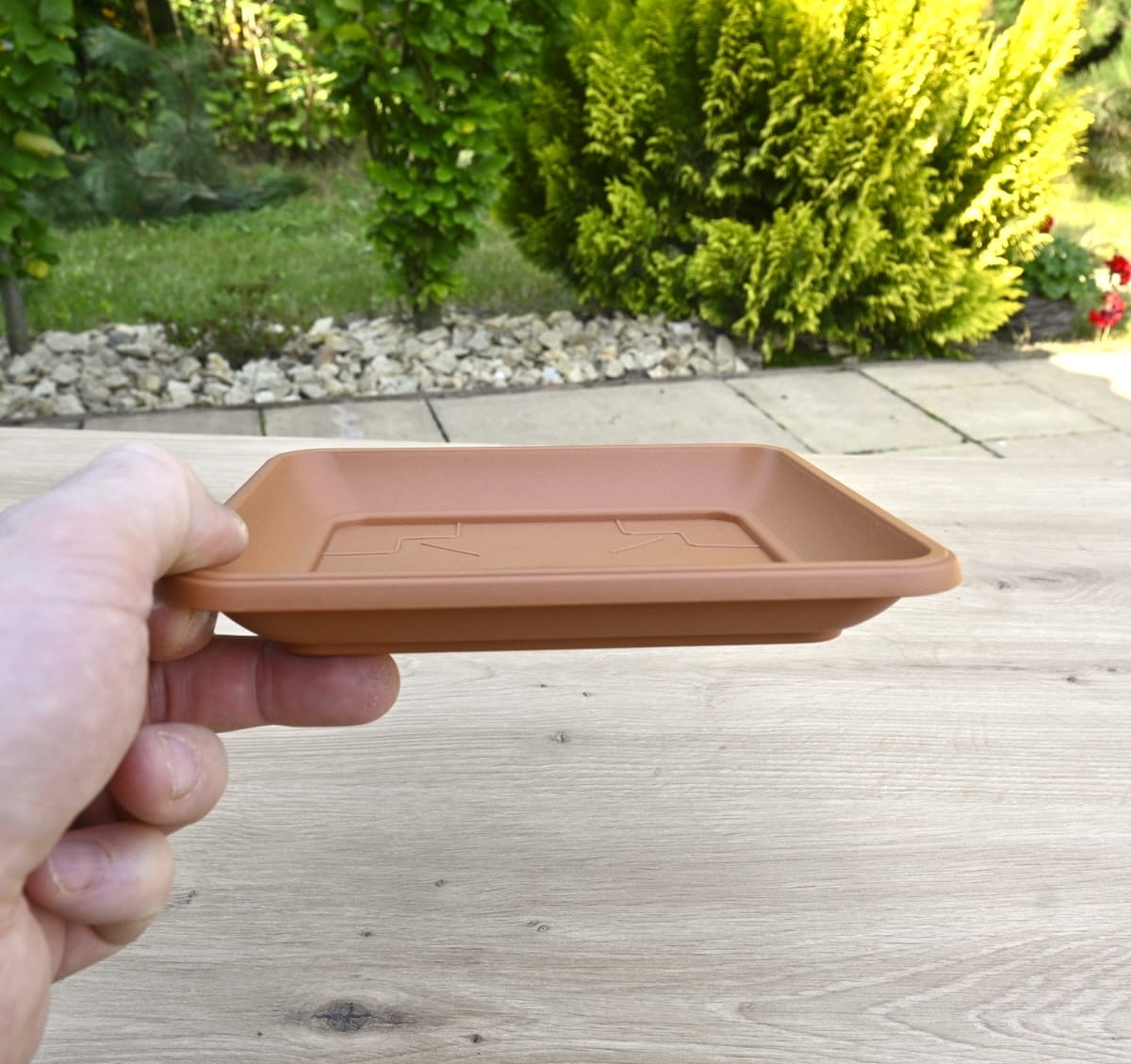 - prosta i ponadczasowa plastikowa podstawka pod doniczki