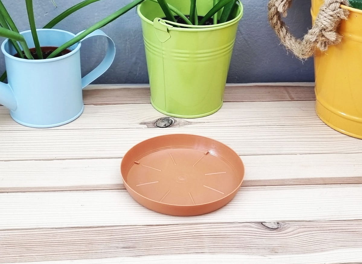 - kolor brązowy terakotowy może sprawdzić się również przy stosowaniu podstawki pod doniczki gliniane