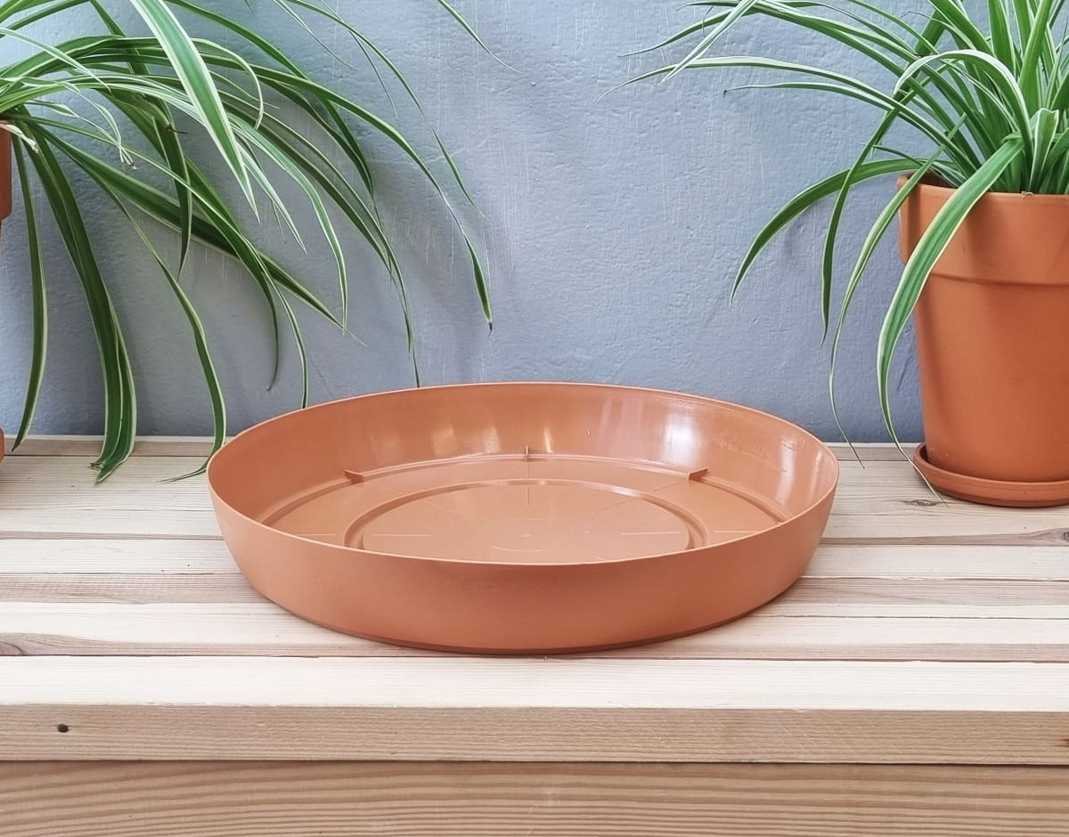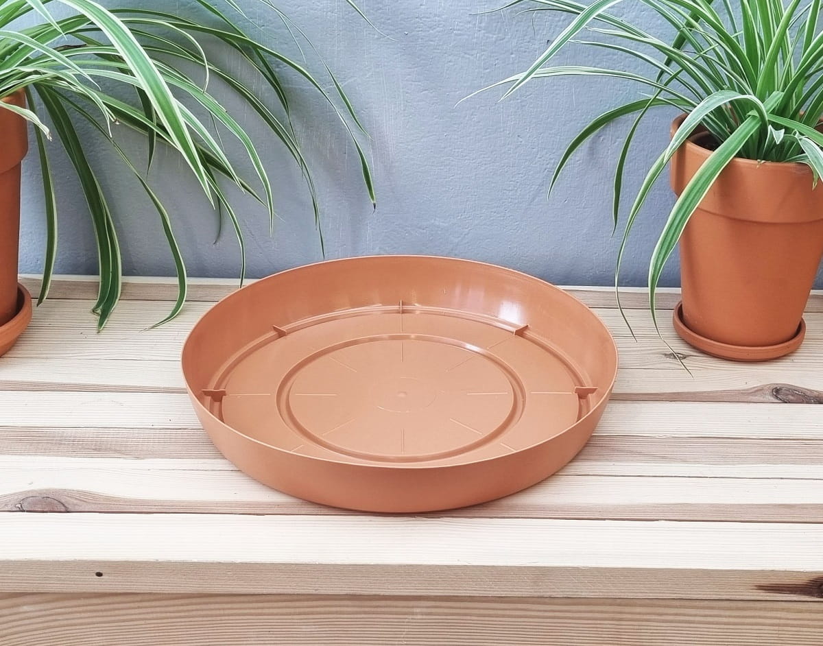 - kolor brązowy terakotowy może sprawdzić się również przy stosowaniu podstawki pod doniczki gliniane