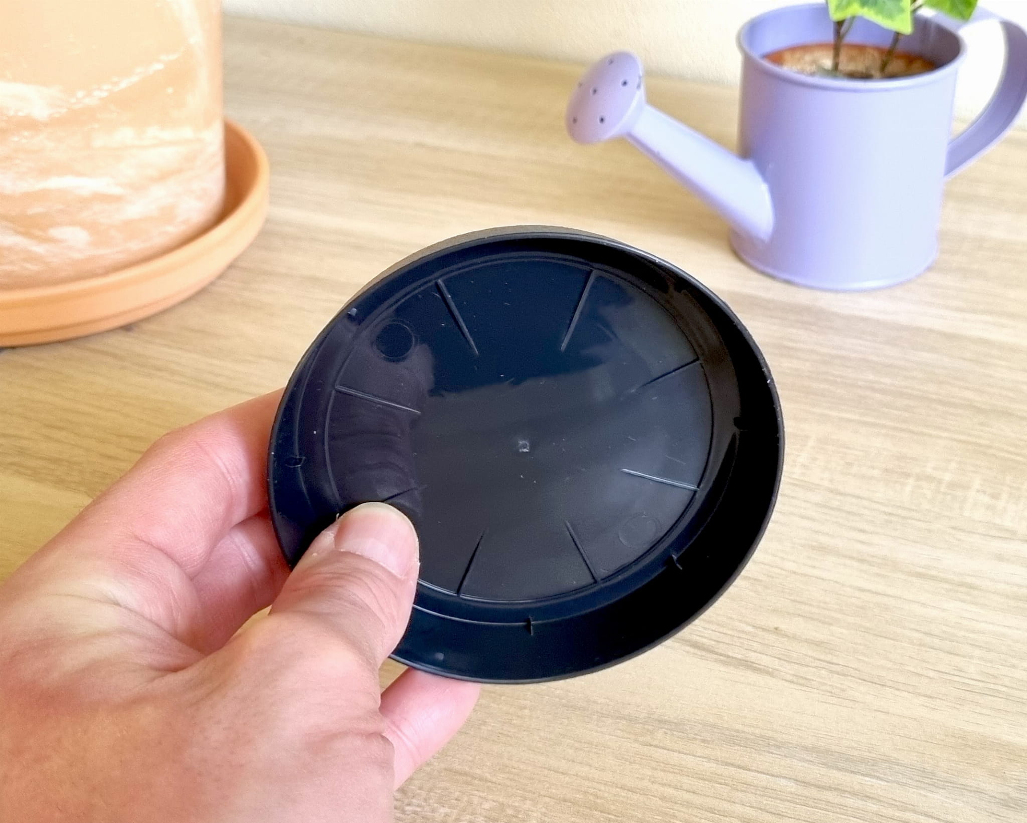 - prosta i ponadczasowa plastikowa podstawka pod doniczki