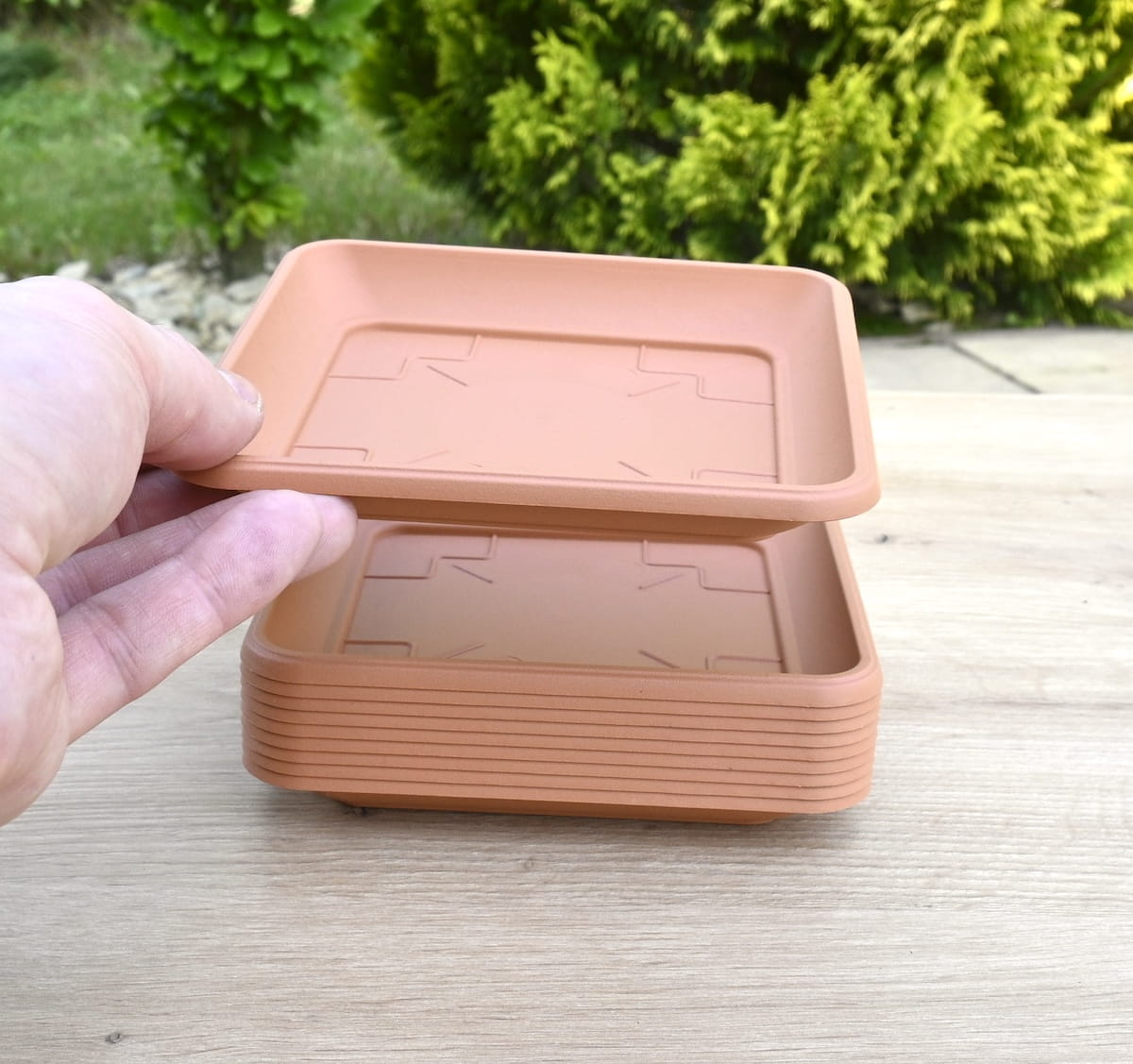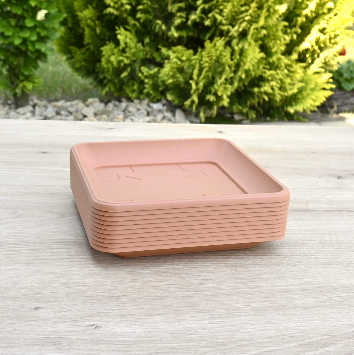 Podstawki pod doniczki Terra 14cm kwadratowe x 10szt. - kolor terakota