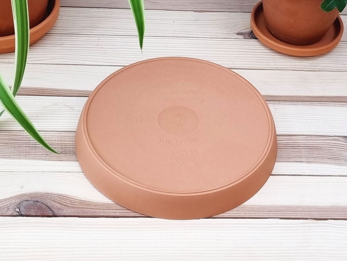 - kolor brązowy terakotowy może sprawdzić się również przy stosowaniu podstawki pod doniczki gliniane