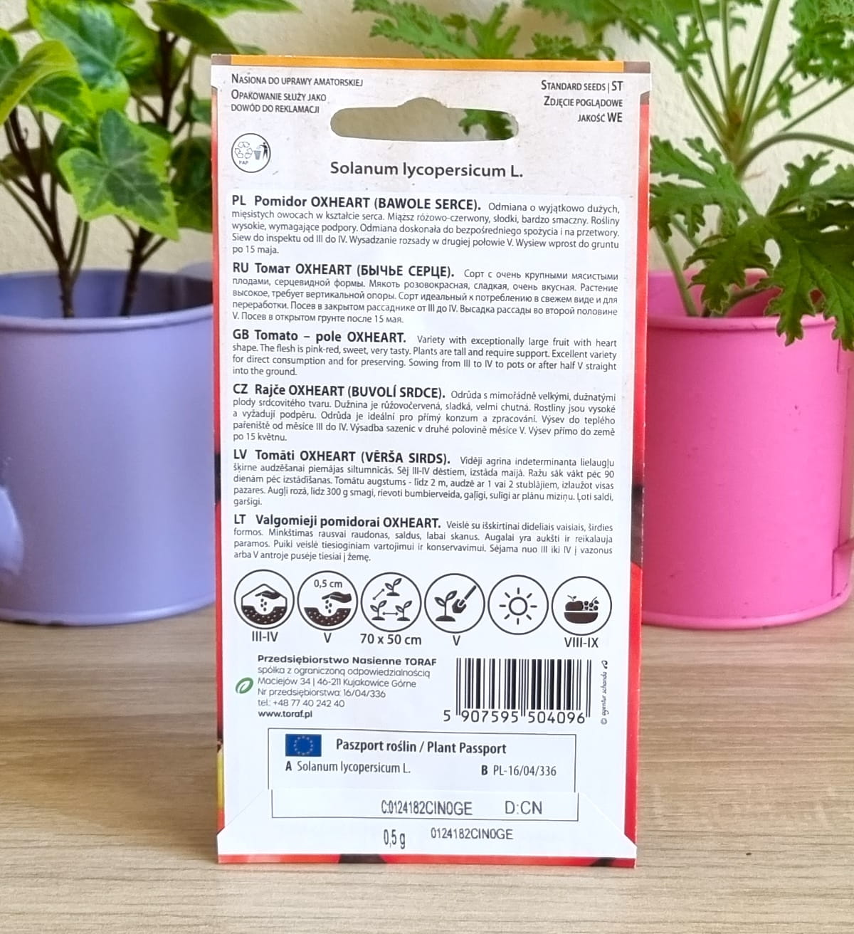 Pomidor BAWOLE SERCE OXHEART, malinowy duży smaczny - nasiona Toraf 0,5g