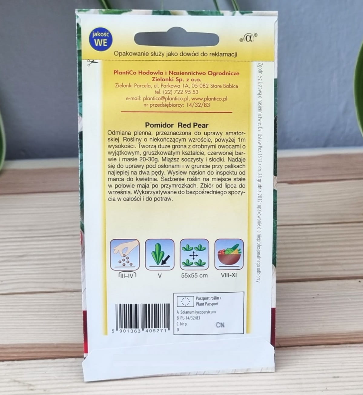 Pomidor RED PEAR - koktajlowy gruszkowy, duże grona - nasiona PlantiCo 0,2g