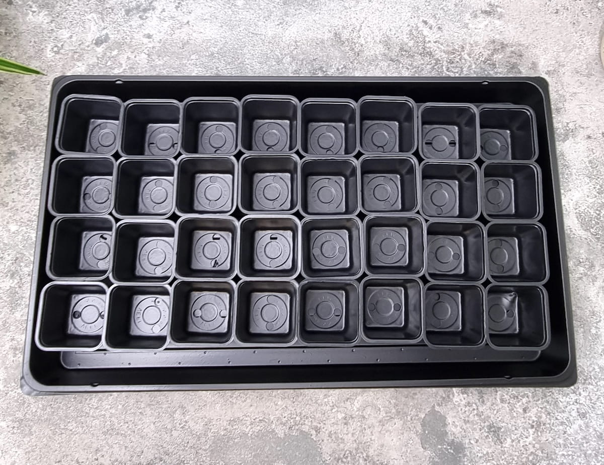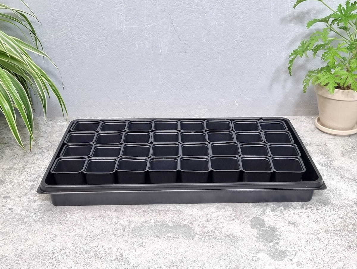 Zestaw 32 doniczek o średnicy 6 cm umieszczonych w pasującej wielodoniczce na tacy. Idealny do uprawy rozsady kwiatów, roślin szkółkarskich oraz pomidorów, ogórków, dyni i innych roślin o szybkim wzroście.