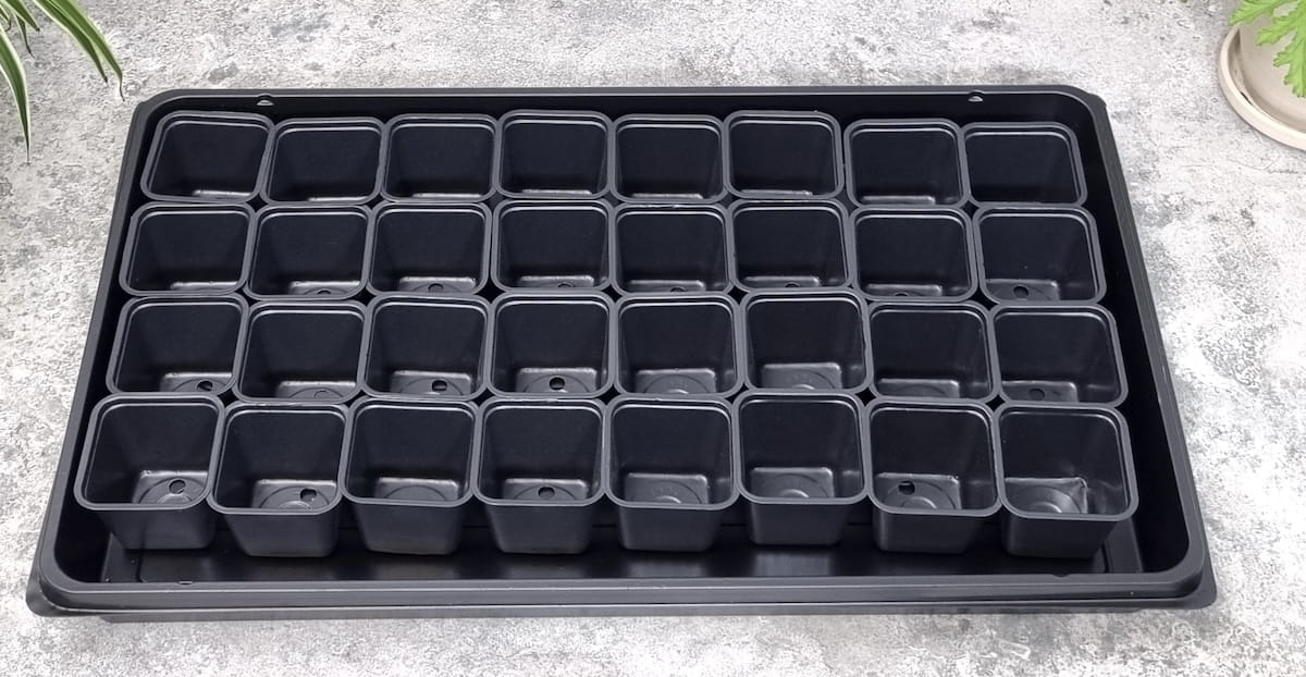 - składa się z 32 doniczek produkcyjnych kwadratowych o wymiarach 6x6 cm oraz tacki o wymiarach 32x52 cm