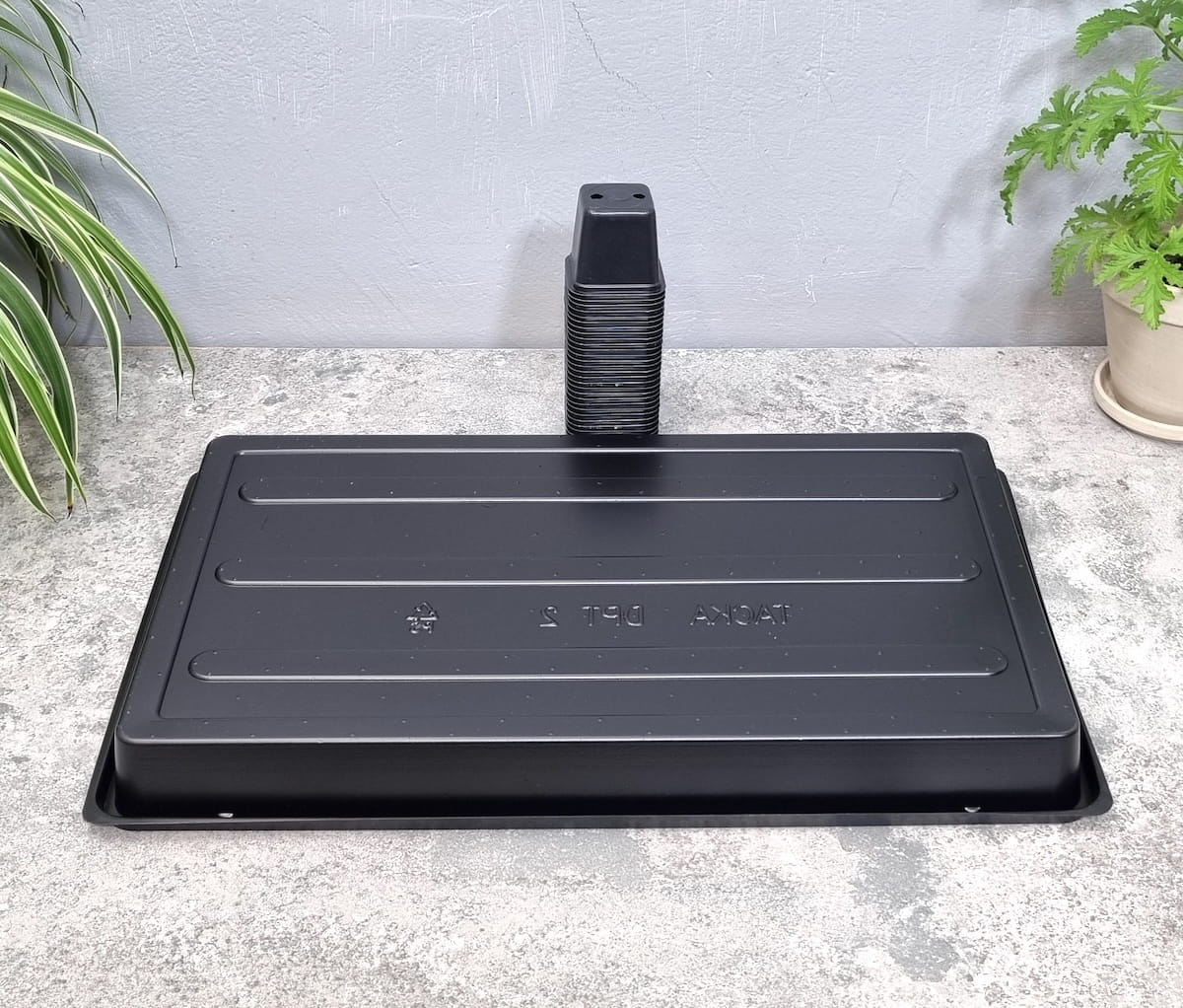 - uwaga - tacka jest cienka i przeznaczona do stosowania głównie jako stacjonarna podstawka, nie zaleca się przenosić jej pod dużym obciążeniem (np. gdy rośliny są obficie podlane lub gdy do uprawy używasz ciężkiej ziemi)