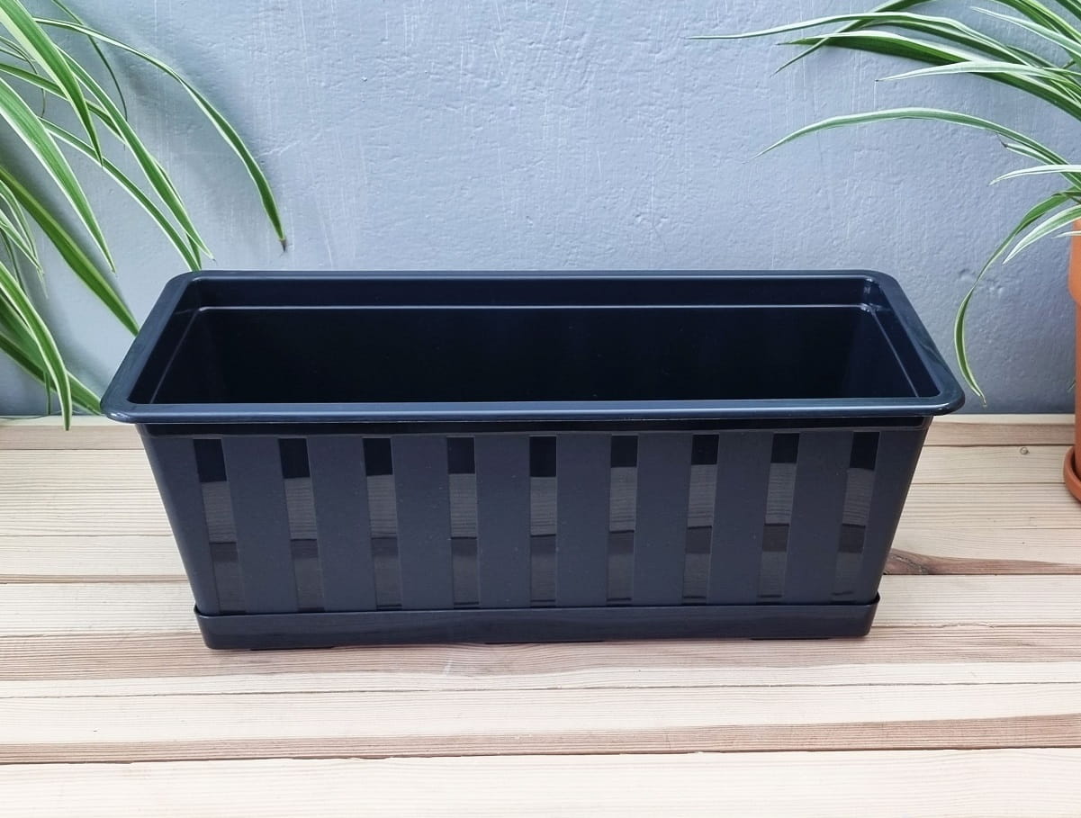 SKRZYNKA BALKONOWA AGRO 40cm ANTRACYTOWA z PODSTAWKĄ - doniczka podłużna