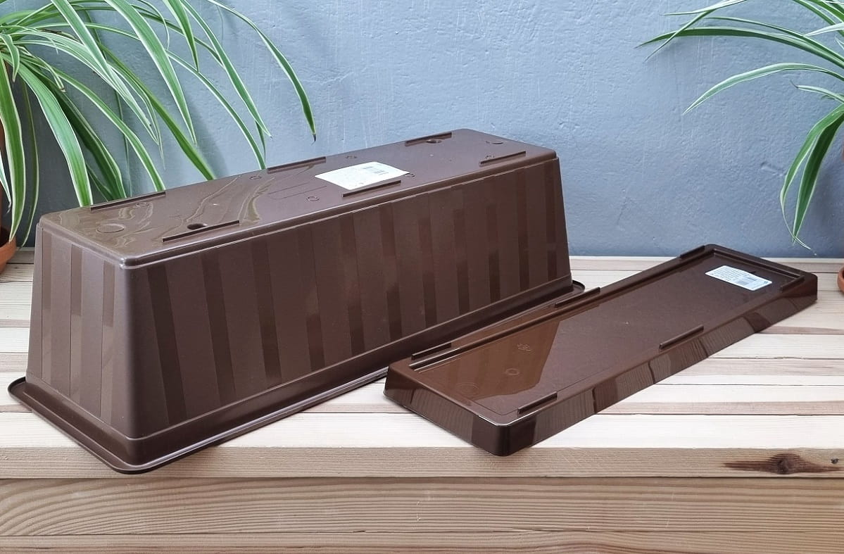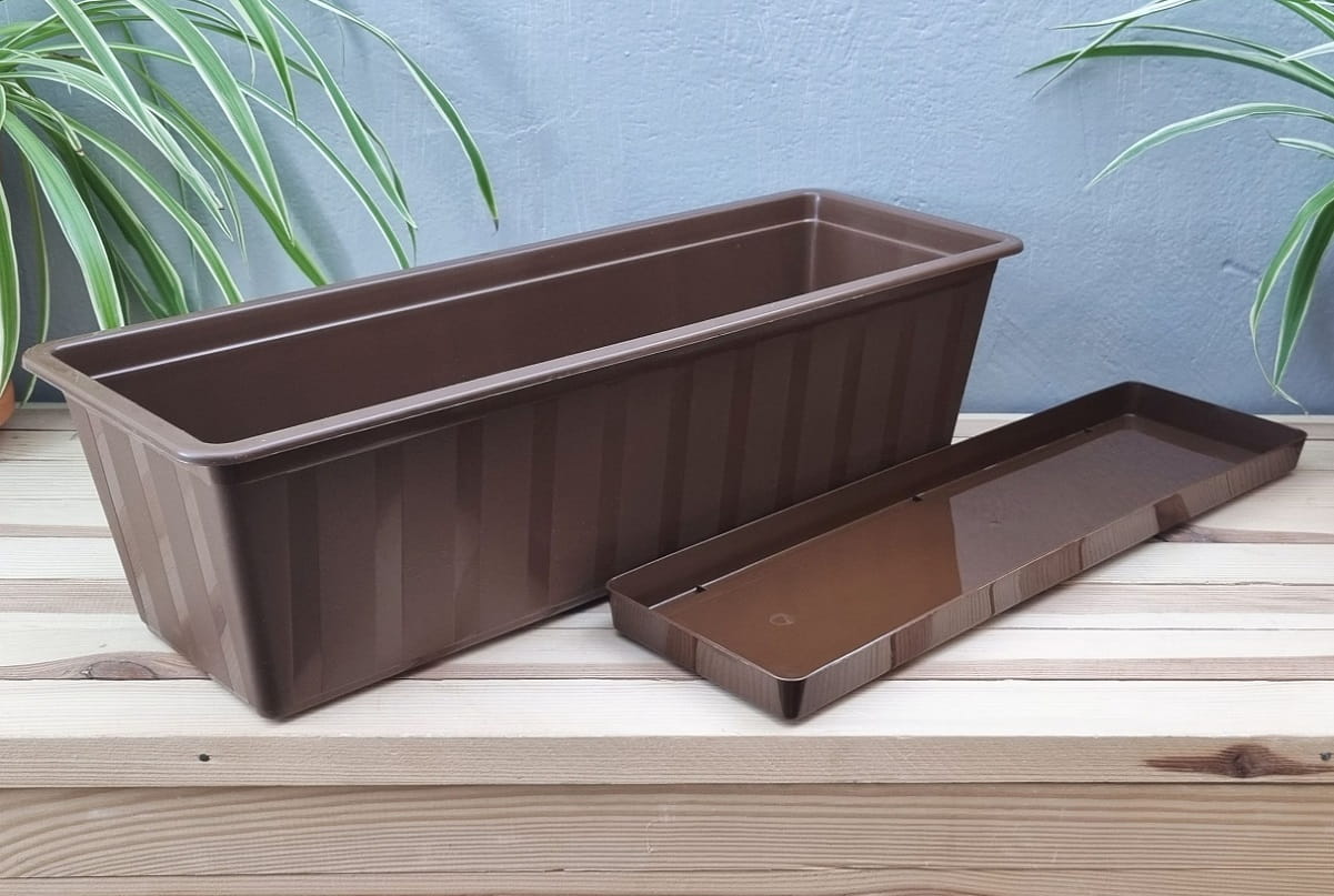 SKRZYNKA BALKONOWA AGRO 50cm BRĄZOWA z PODSTAWKĄ doniczka podłużna