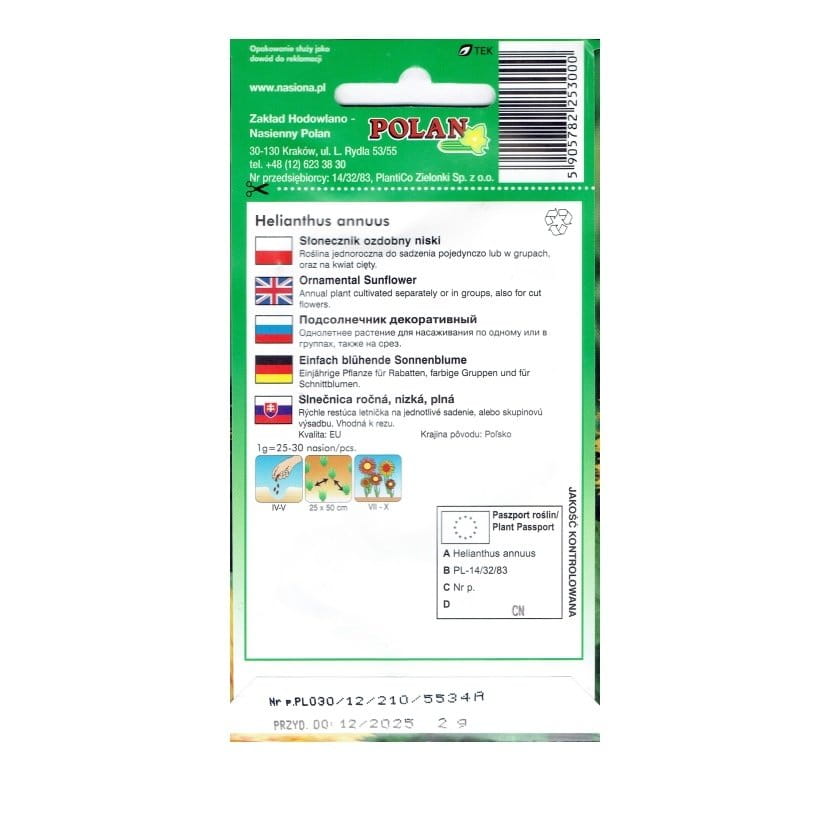 SŁONECZNIK OZDOBNY PEŁNY Niski nasiona kwiatów 2g