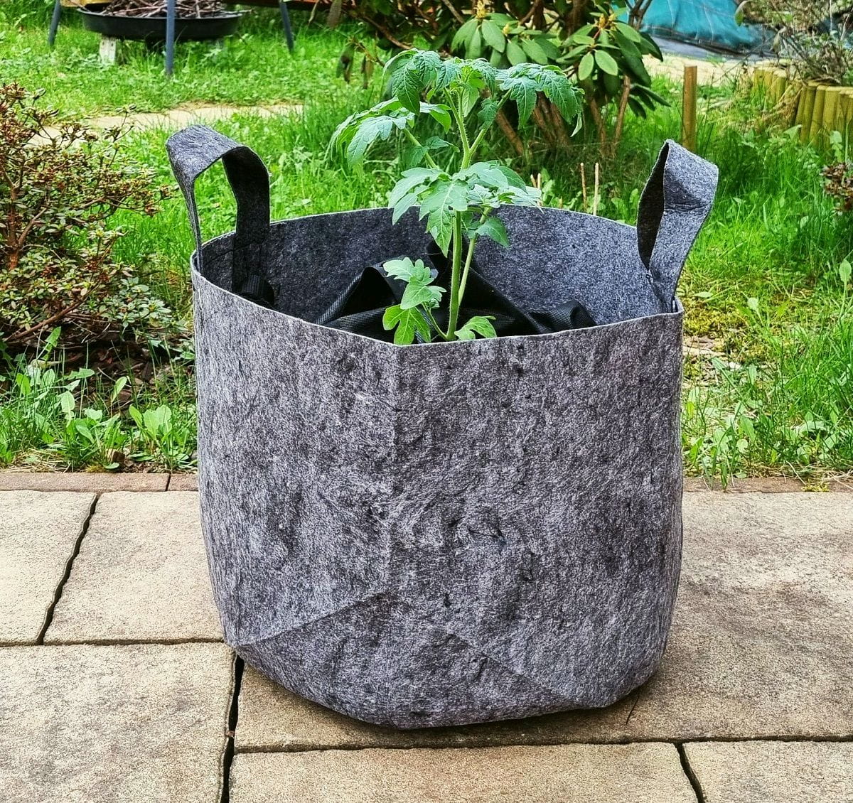 - doniczki filcowe znakomicie sprawdzają się w uprawie pomidorów, ogórków, papryki, a także ziemniaków, marchwi i innych warzyw oraz drzew i krzewów