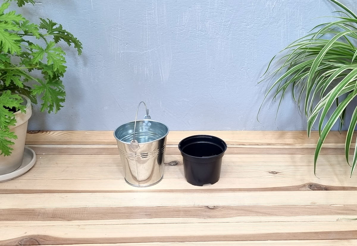 Doniczka metalowa WIADERKO 11cm OCYNKOWANE - osłonka z wkładem uprawowym