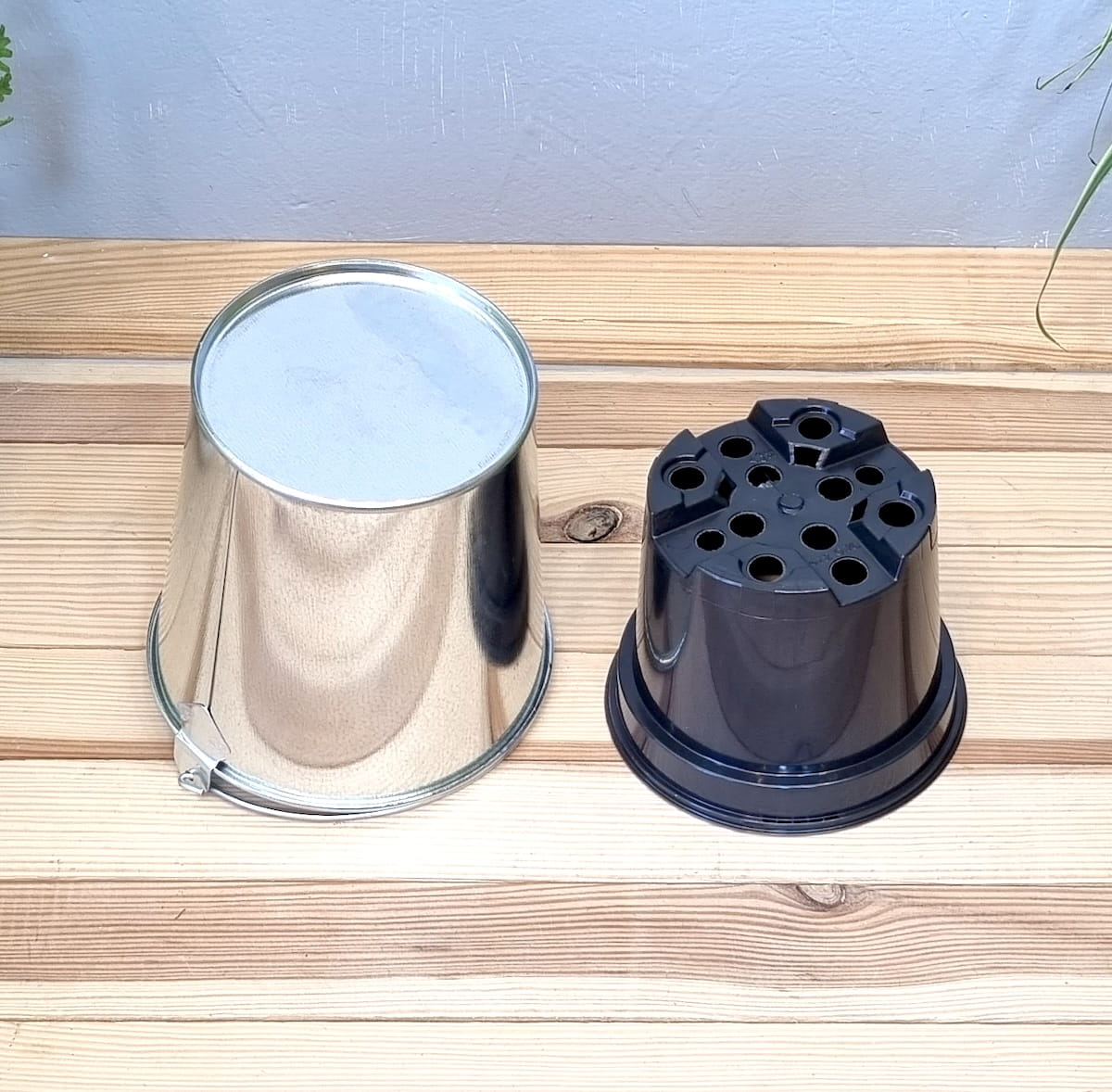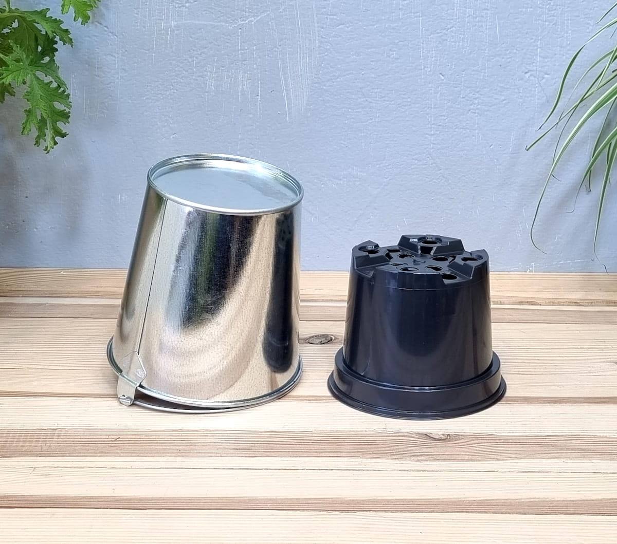 Doniczka metalowa WIADERKO 13cm OCYNKOWANE - osłonka z wkładem uprawowym